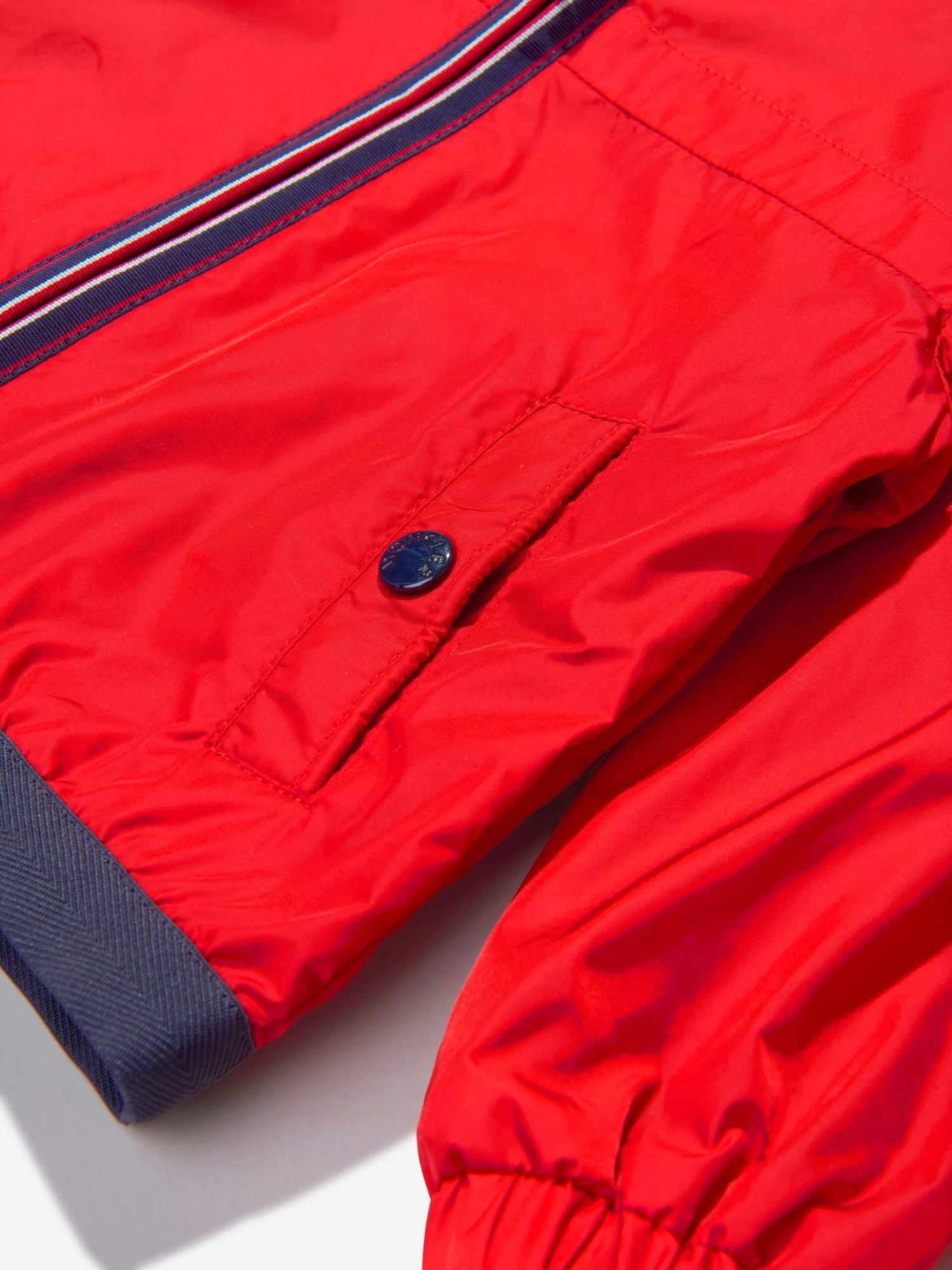 Don’t let a downpour keep them indoors. Styled in brilliant red, the baby boys’ Anton jacket by Moncler Enfant will keep them warm and dry during storms and showers, crafted from water-repellent rainwear and finished with a tricolour trim inspired by the French flag. With a zip-through fastening down the front, it features a soft jersey lining, elasticated cuffs and a felt logo detail on the sleeve.