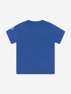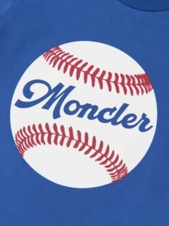 Take me out to the ball game… This baby boys blue t-shirt from Moncler features a fun baseball print on the front. Crafted from a soft, stretchy cotton, the stylish tee offers free and easy movement, with the iconic badge appliqué adorning the left sleeve.
