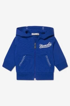 Take me out to the ball game… this baby boys blue tracksuit from Moncler offers a baseball inspired design for little ones. Crafted from a soft, stretchy cotton for free and easy movement; top-stitching and an embroidered logo appear on the hoodie, finished off with the iconic badge appliqué adorning the left sleeve. A branded tab appear on the reverse of the matching joggers.