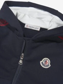 Full of Alpine spirit, this baby boys navy zip-up hoodie is an elevated casual for everyday comfort. Crafted for movement the piece is composed of an elasticated cotton and decorated with a contrast X motif jacquard trim across the sleeves. The iconic logo badge proudly sits on the chest.