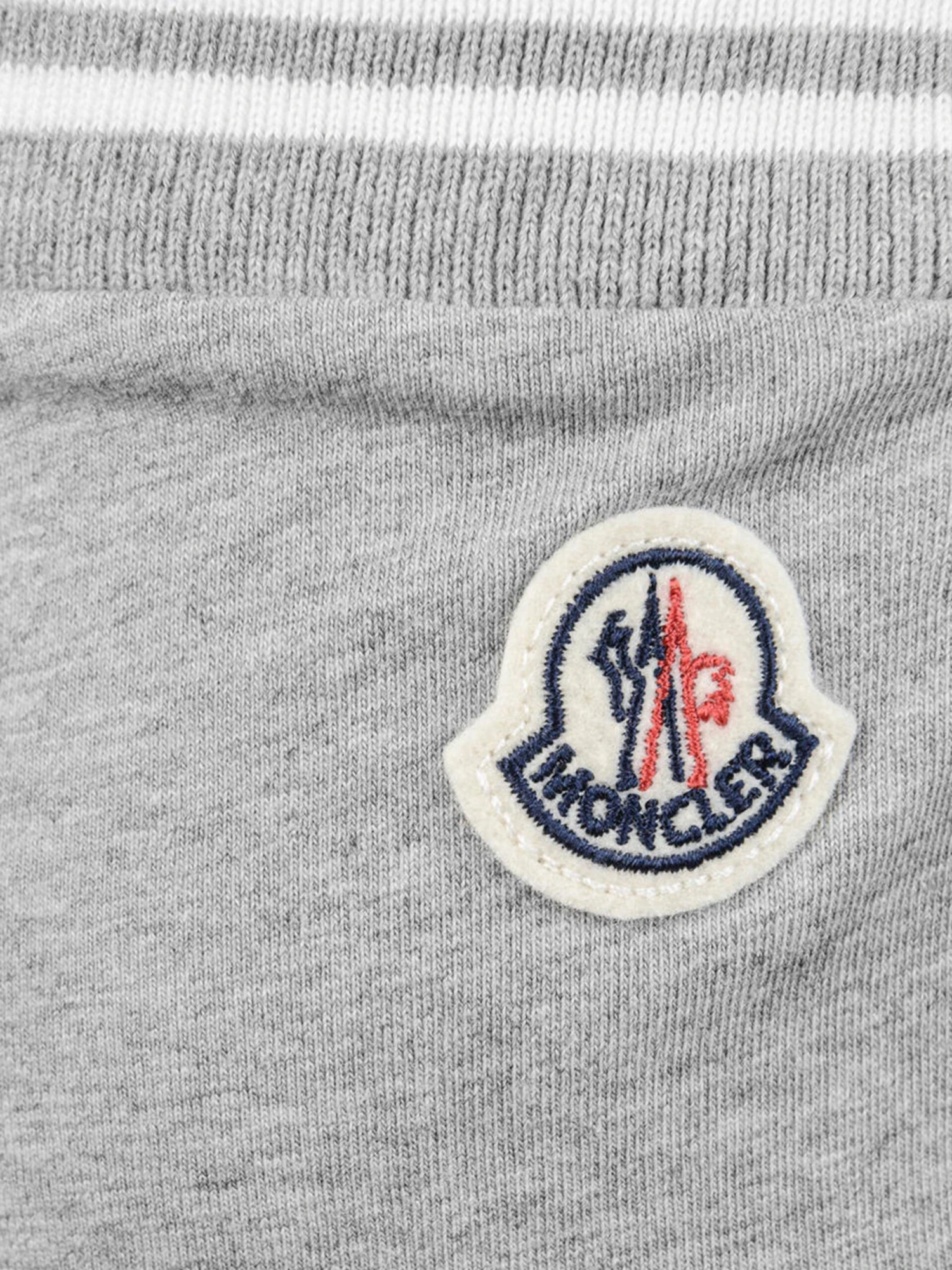 Moncler grey shorts with a striped elasticated waistband, side seam pockets and the logo tab on the reverse.