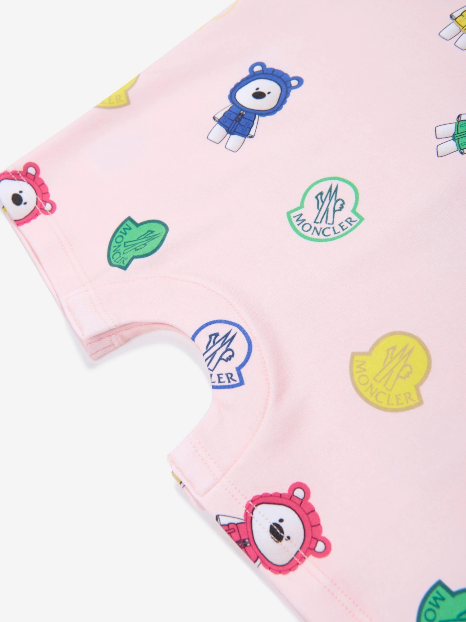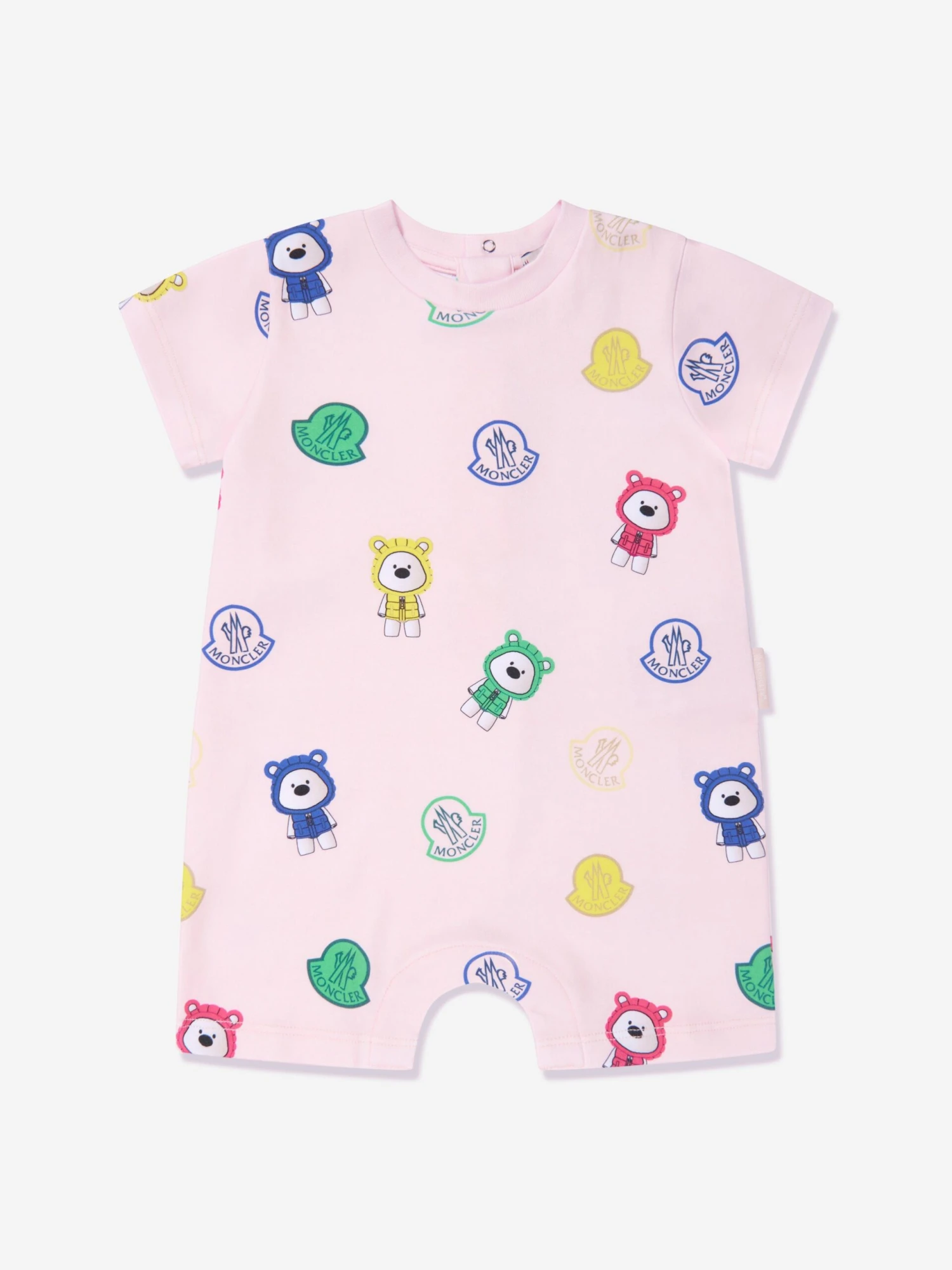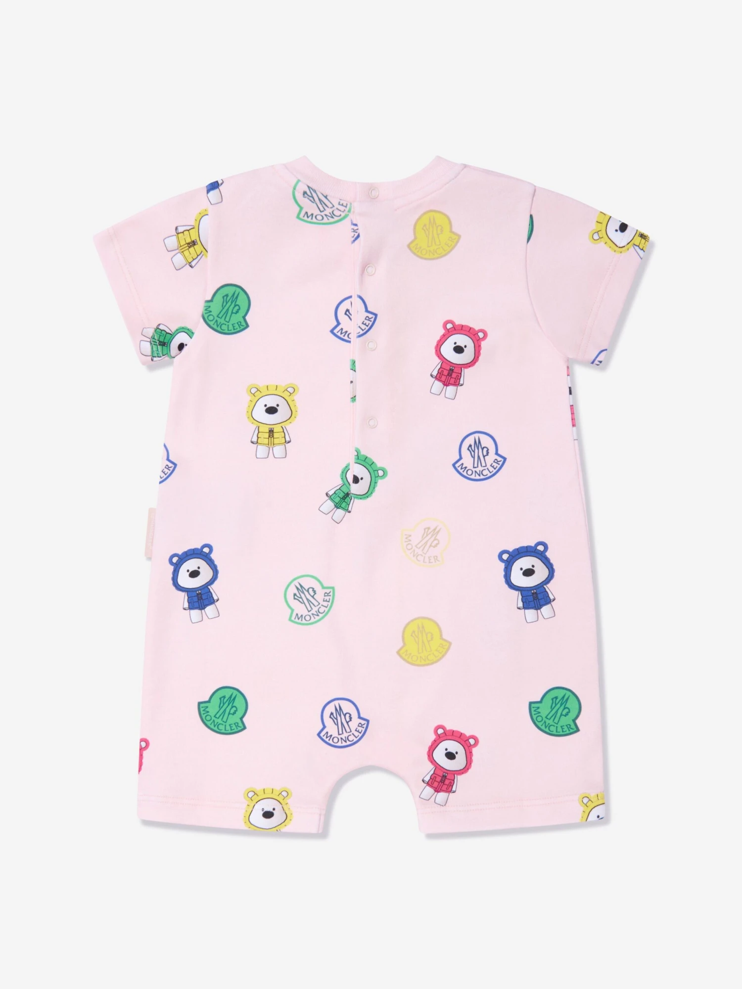 This Moncler Enfant Baby Girls Bear Print Romper is the perfect pick for adding an extra touch of sweetness to any nursery. It features an adorable bear print in multicoloured tones on a cotton fabric in pretty pink. With its casual and nursery wear styling, this romper is ideal for baby and baby girl. It has soft elastic detailing for all-day comfort and softness. 100% Cotton material ensures a cozy and breathable fit for lasting comfort.