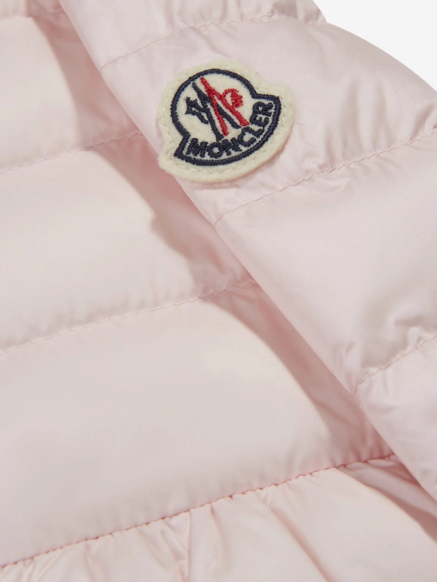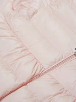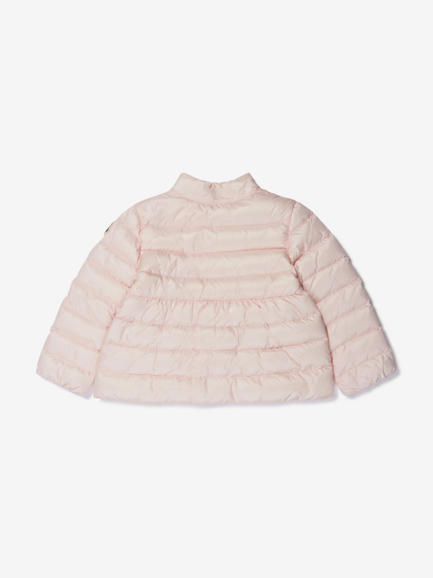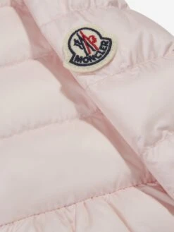 A beautiful and slightly fitted pale pink jacket for little girls by luxury French brand Moncler Enfant. Made in super soft water-repellent outer and padded with warm down, it has the brand’s iconic felt logo patch on one sleeve with a logo-embossed zip fastening.