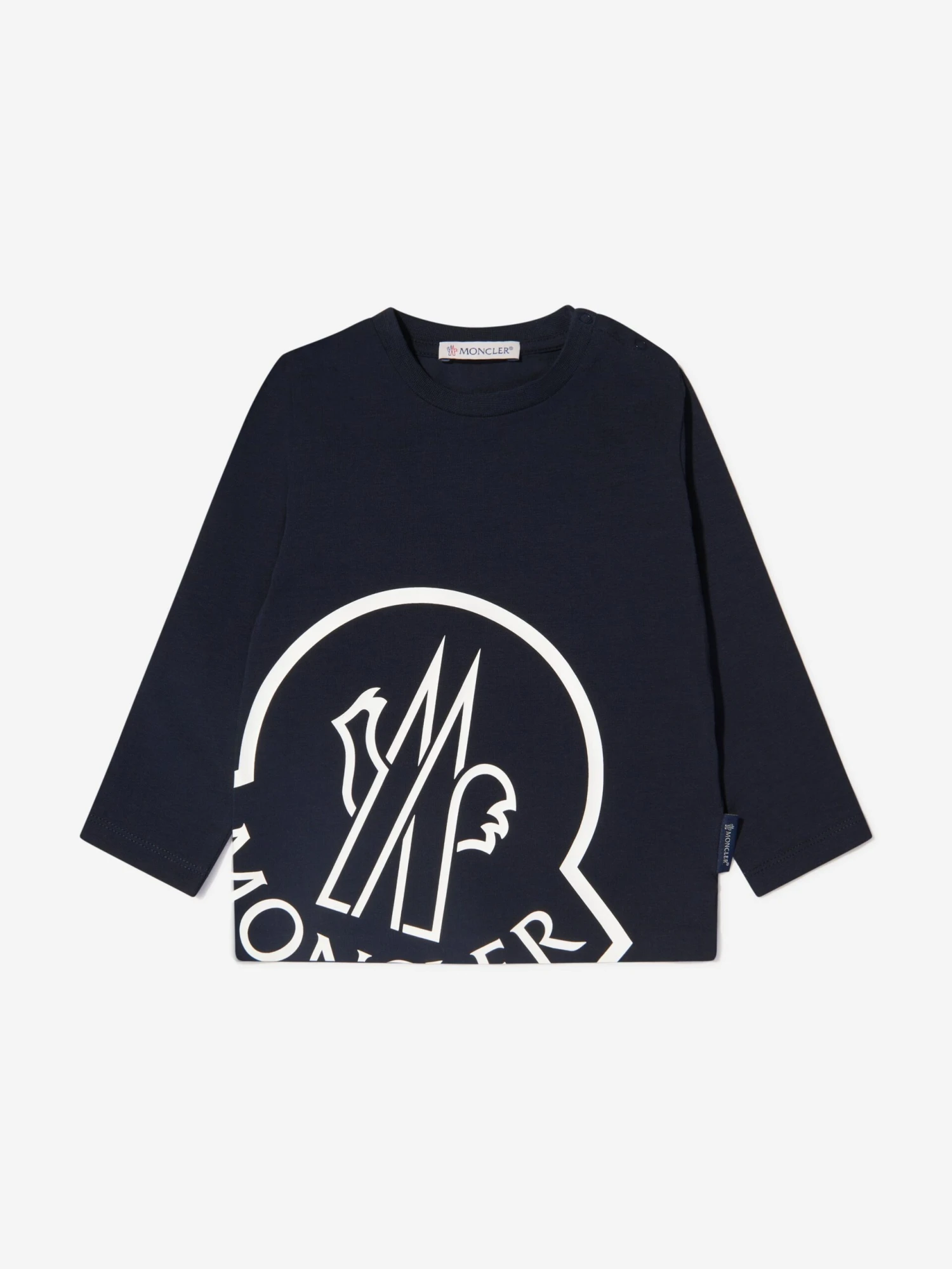 This baby girls long sleeve t-shirt from Moncler Enfant is made from soft cotton with added stretch for comfort. Featuring a large Moncler logo to the front and branded seam tab.