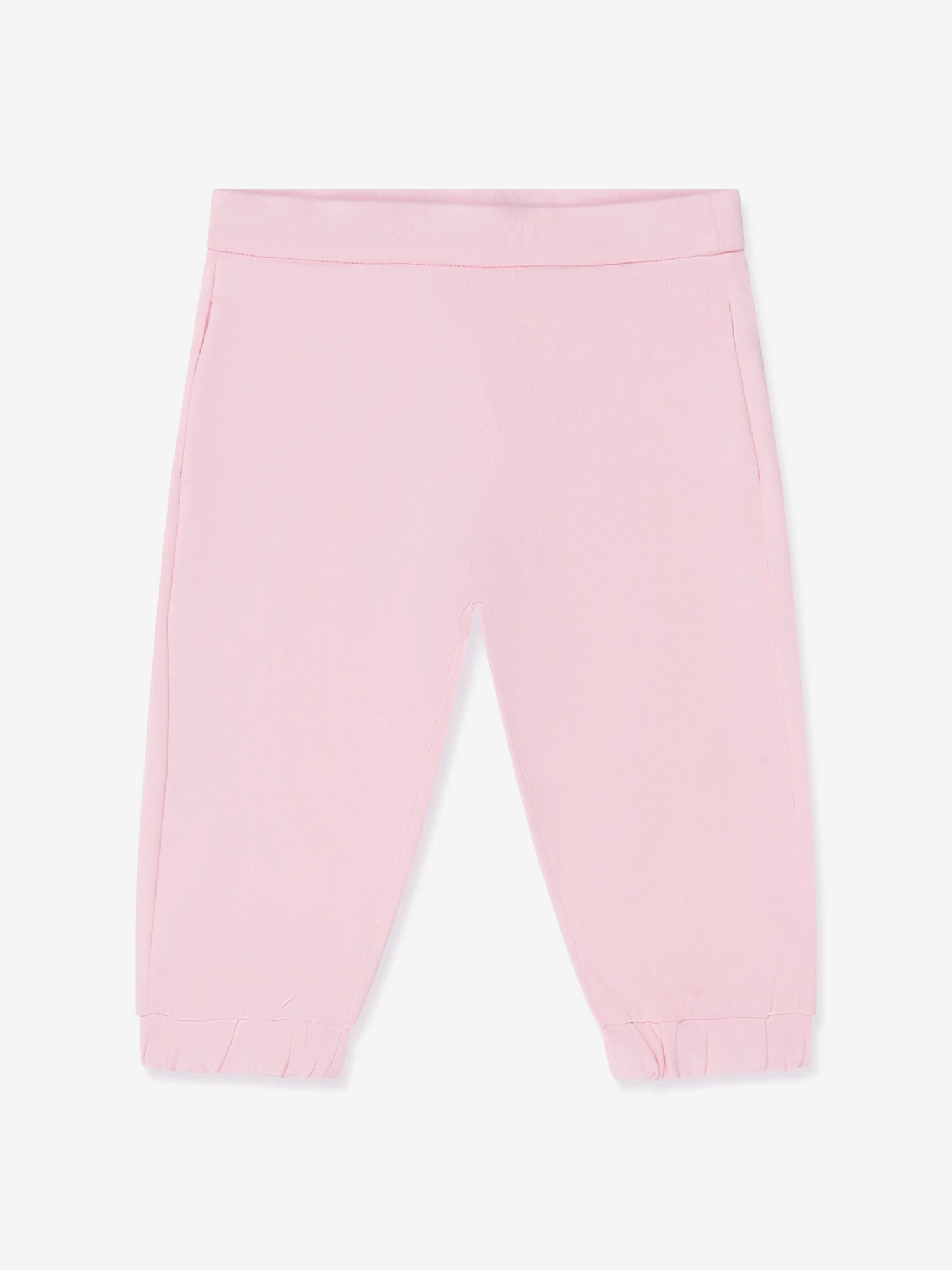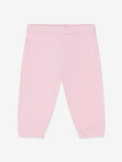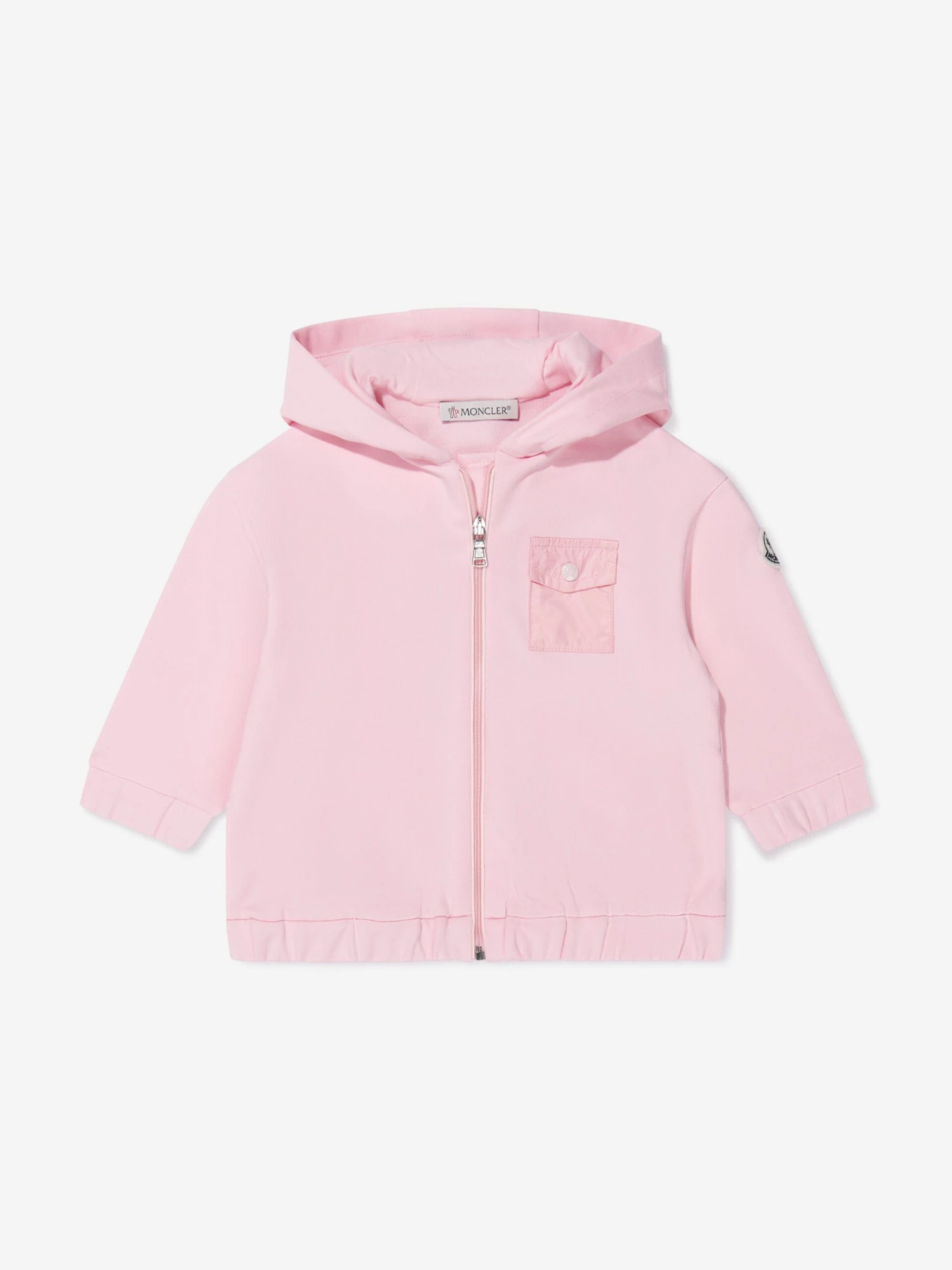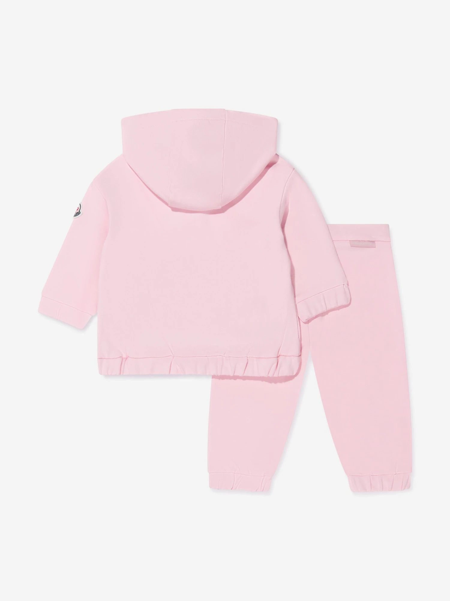 Cute and cosy, this baby girls 2-piece pink tracksuit set from Moncler offers a chic Alpine style for little ones. Crafted from a soft and stretchy cotton for free and easy movement, the set consists of a hoodie with matching joggers. The label’s iconic badge motif adorns the left sleeve, whilst a branded tab sits on the reverse of the bottoms.