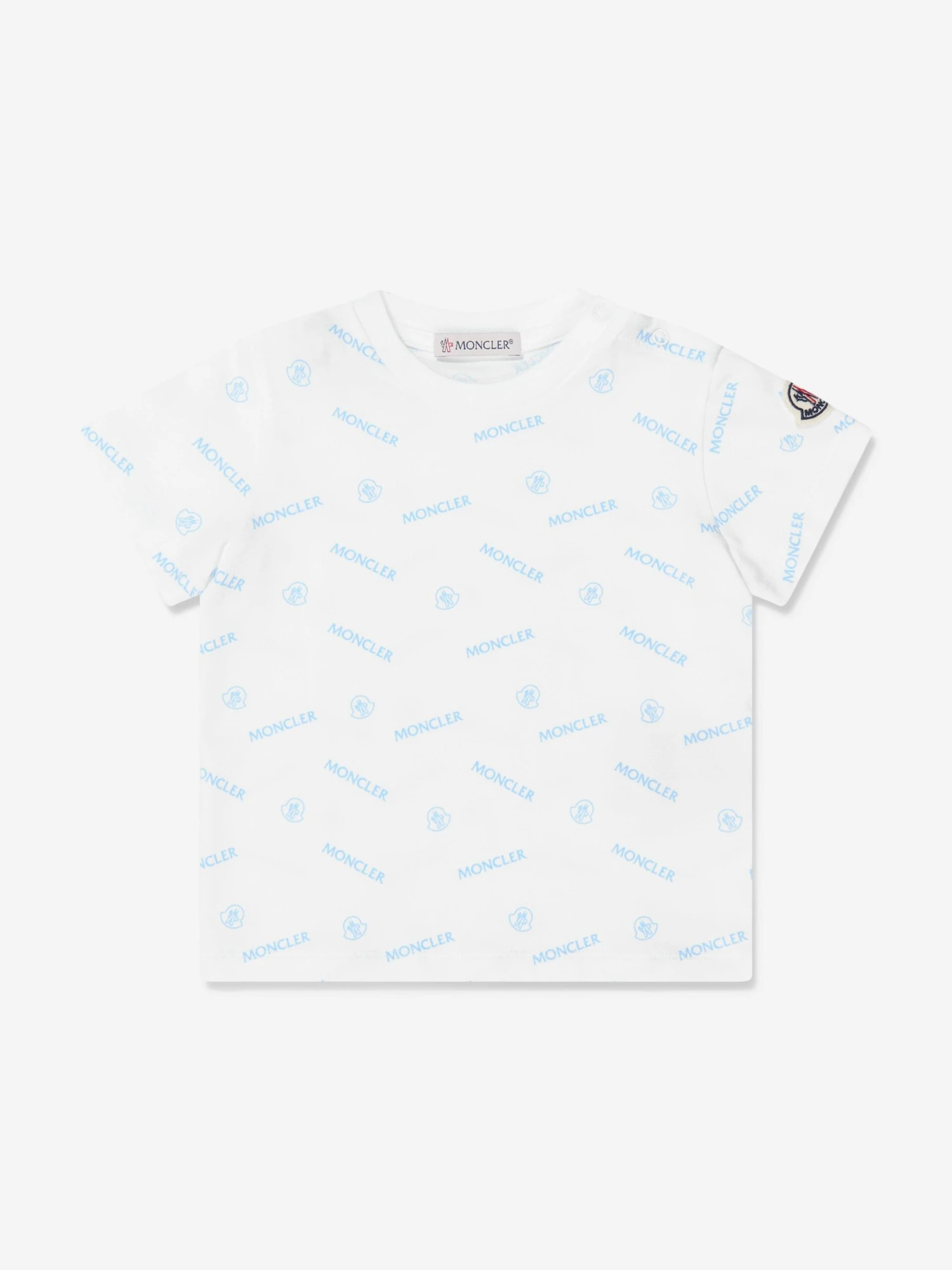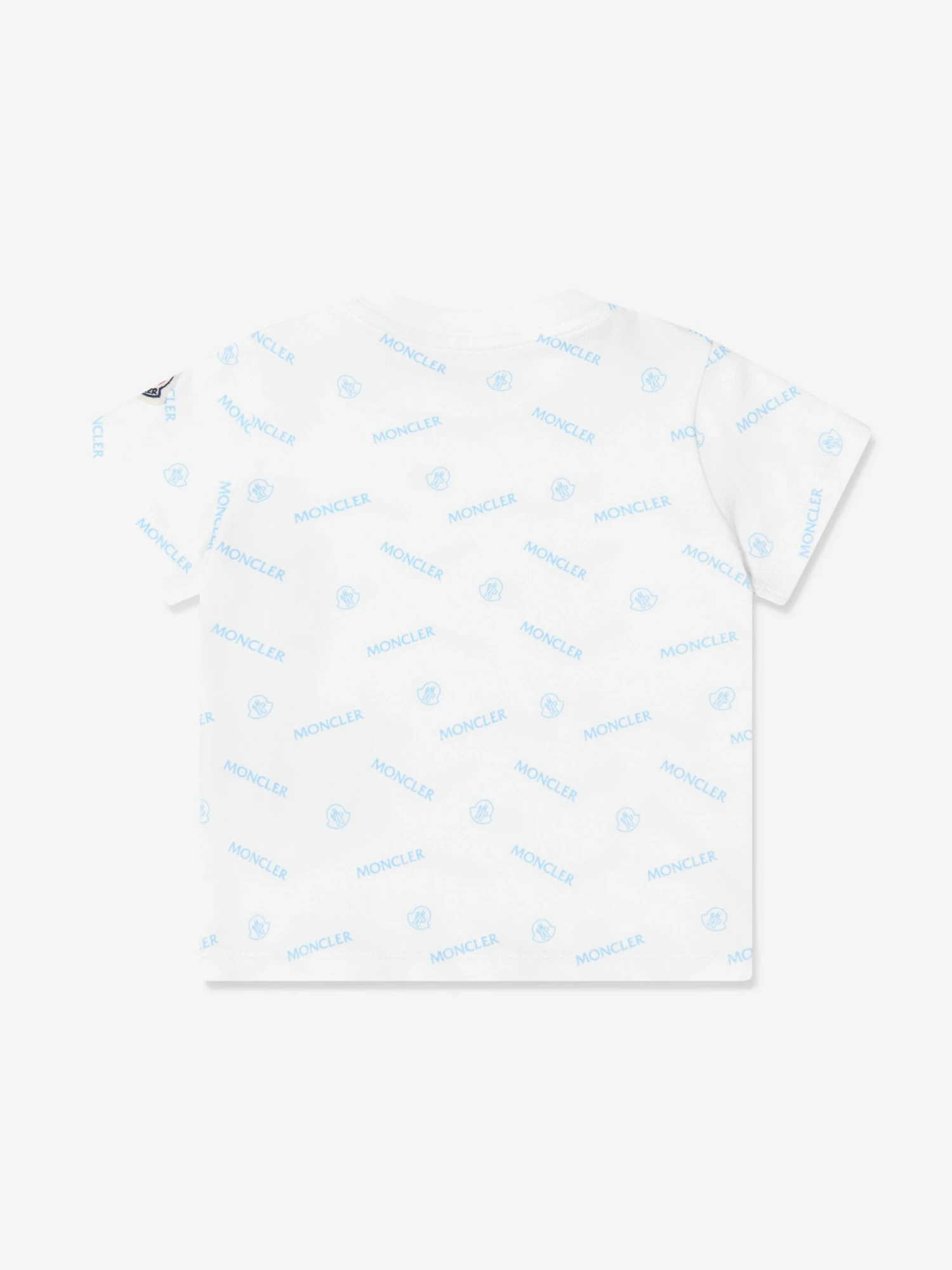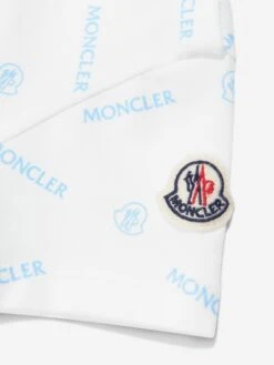 Simple and stylish, this white Moncler t-shirt for baby is a versatile option for cool and casual dressing. Crafted from a soft, stretchy cotton for free and easy movement, the tee features an all-over logo print, finished with the iconic badge appliqué adorning the left sleeve.