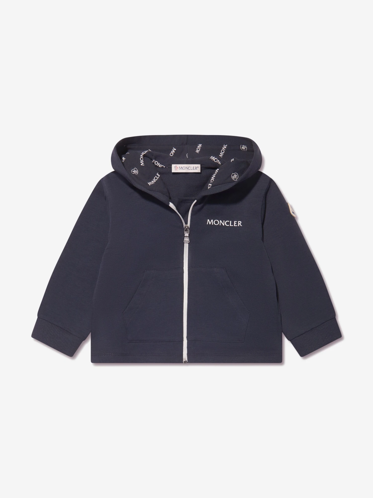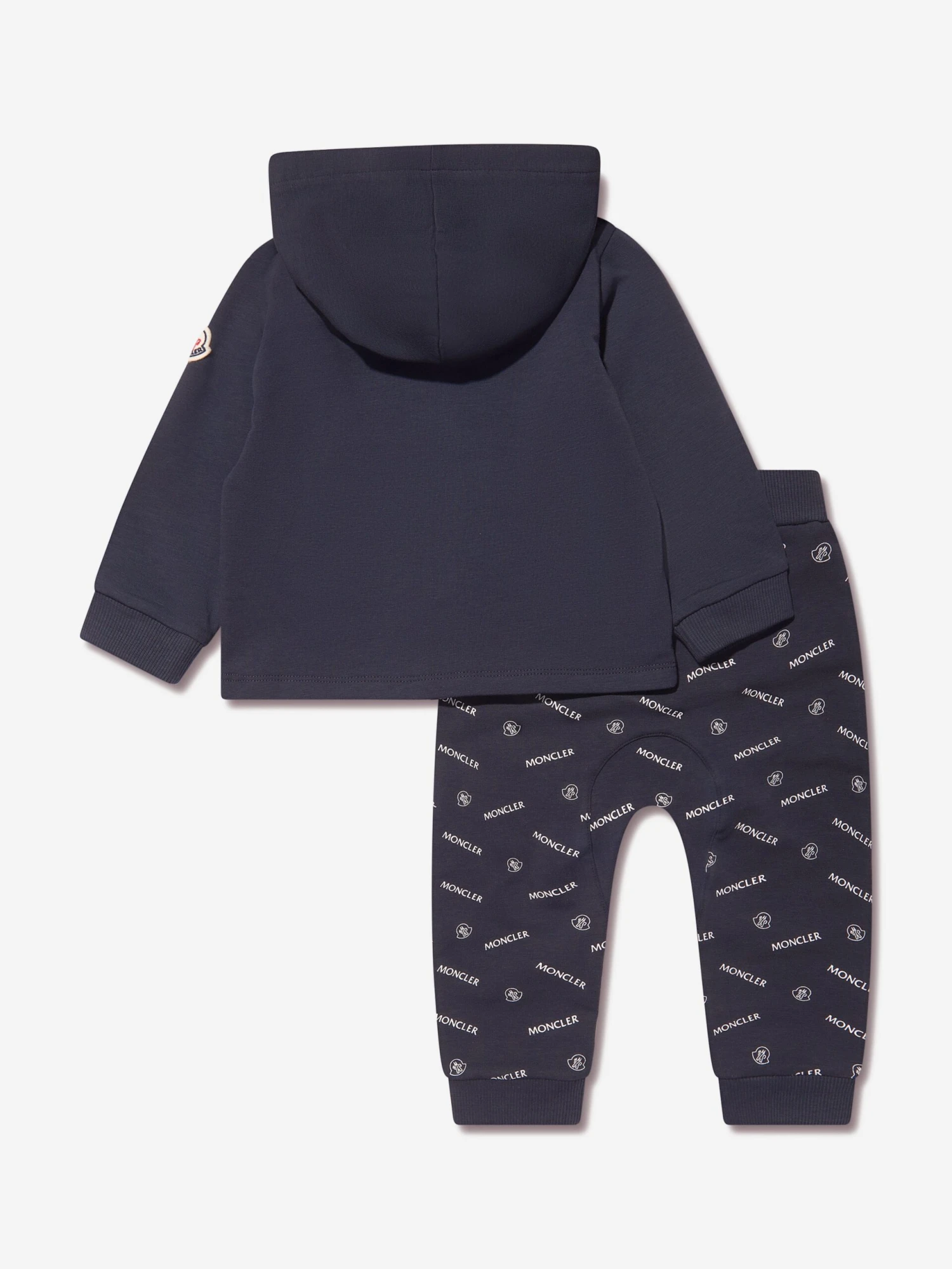 Offering sublime Alpine style for little ones, this baby boys navy tracksuit from Moncler is a plush everyday set. Crafted from a soft and stretchy cotton for free and easy movement, the set consists of a hoodie displaying a logo motif on the chest, whilst the matching bottoms sport an all over print.