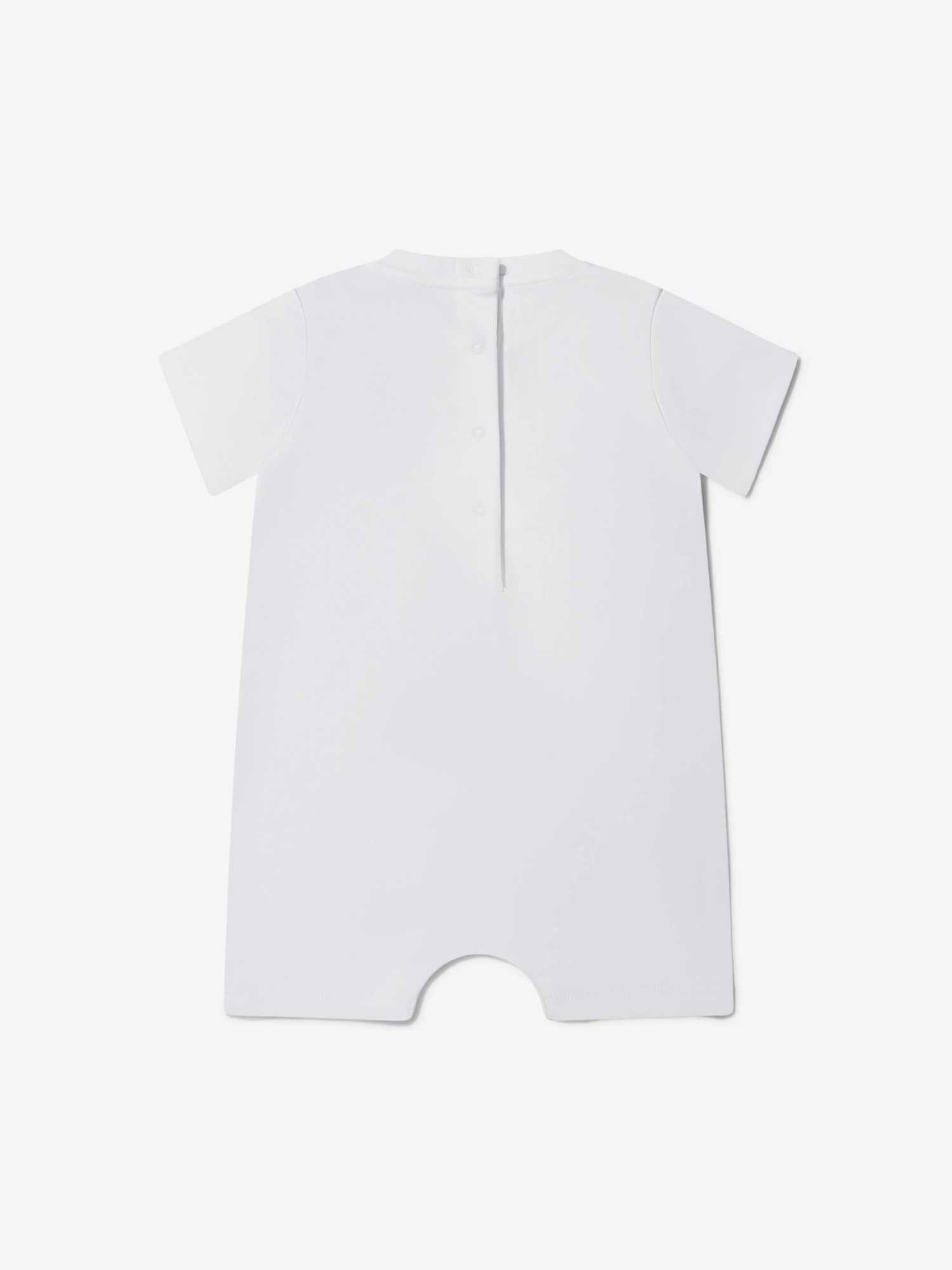 This lovely unisex romper from Moncler Enfant is made in a gorgeous pure white cotton which is soft against baby’s skin. Featuring a front pouch pocket, printed Moncler logo to front and branded badge detail to sleeve. The romper is finished with a back popper fastening for easy dressing.