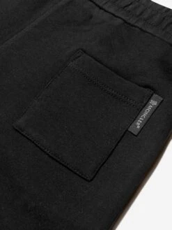 Black shorts for little boys by luxury French brand Moncler Enfant, made in soft cotton jersey. They have an elasticated waist, slanted front pockets and a raised black logo print on the front.
