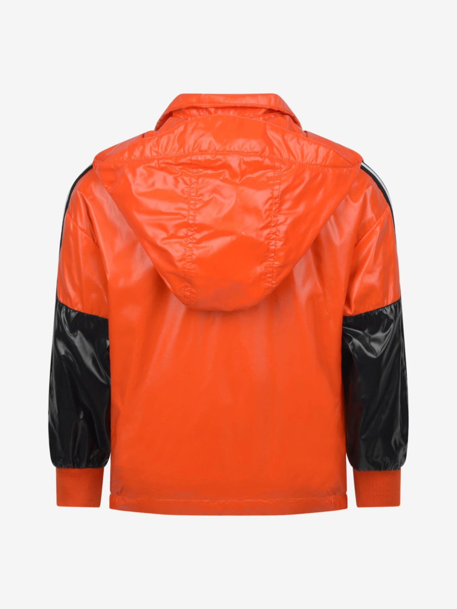 A super cool style for him, this kids jacket from Moncler is designed with bold orange and black colourblocking. With a detachable hood and a snap button closure that hides a full-front zip. Elastic cuffs offer a sporty shape and underarm vents keep it breathable. With a cotton jersey lining and unlined sleeves, and complete with the iconic Moncler logo.