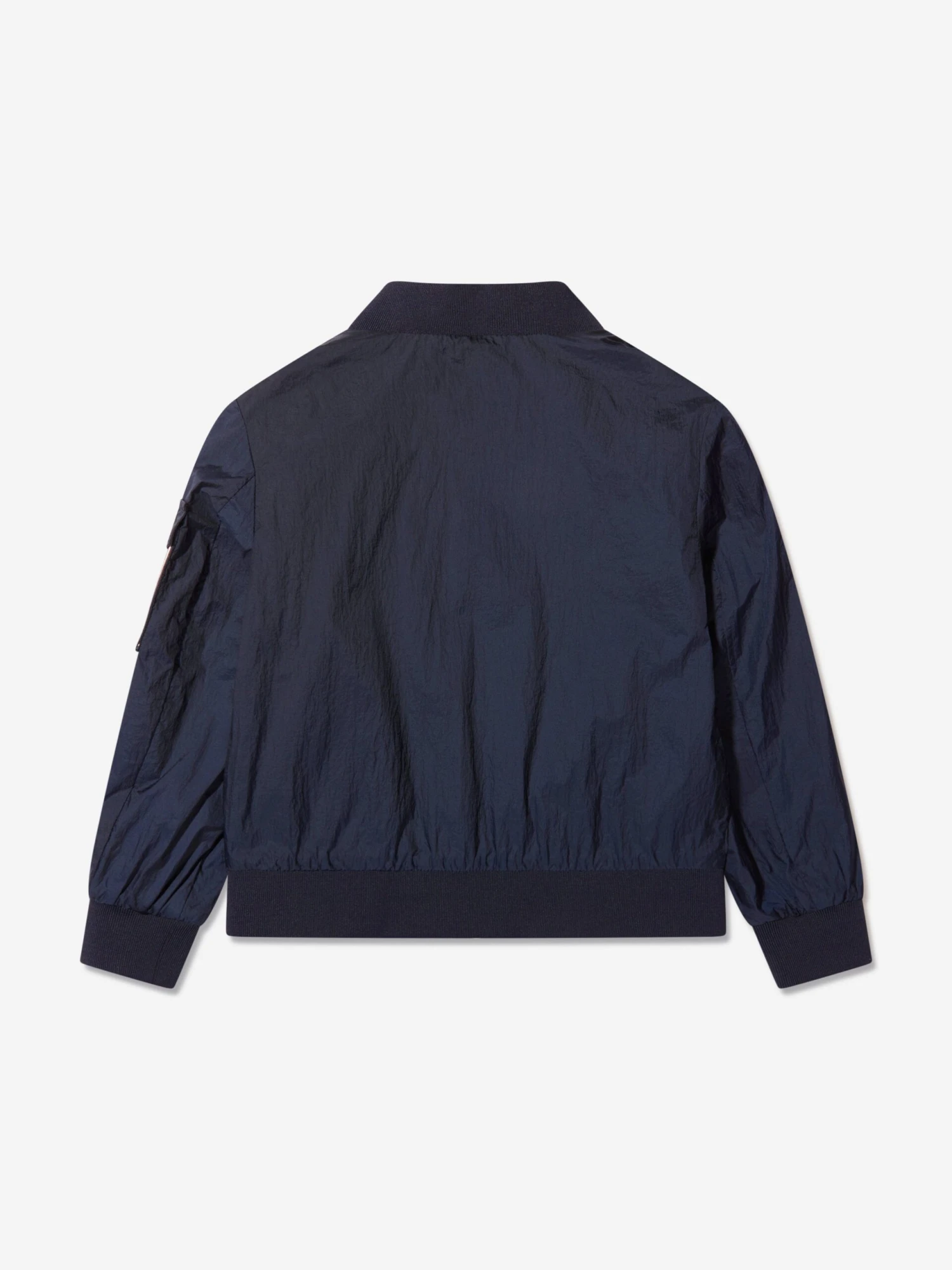 Introducing the Moncler Enfant Aimon Bomber jacket for boys. This navy jacket is a great addition to any wardrobe and is perfect for casual to semi-casual wear. Crafted from 100% polyamide, it’s a lightweight, comfortable and stylish choice that will easily take him from day to night.