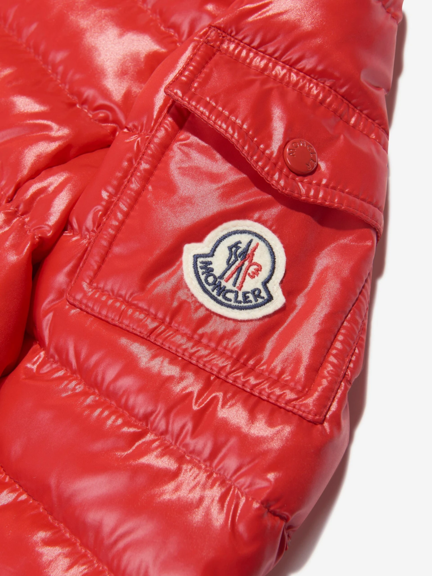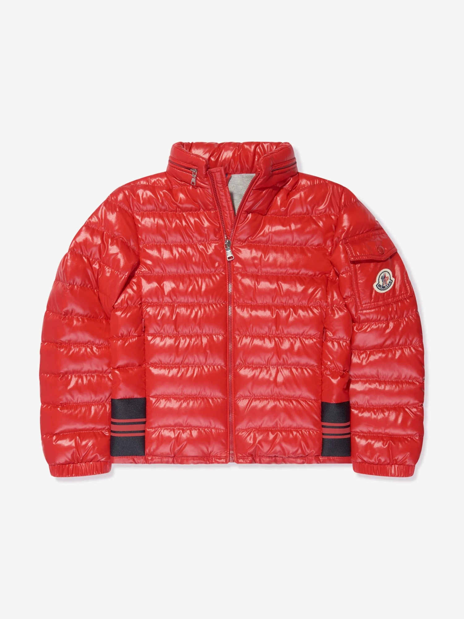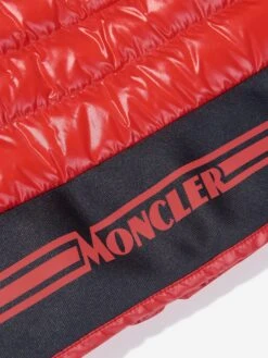 In a bright red colourway, this boys’ jacket by French designer Moncler Enfant will add some serious colour and a touch of luxury to his look. Made from shiny nylon filled with a light and warm down, this padded jacket is finely finished with a black patch across the back bearing the iconic brand name. A zip fastening and elasticated cuffs and waistband complete this beautiful piece of premium outerwear.