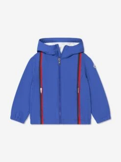 Choose sports-luxe ski style with this boys Darvas jacket from Alpine experts, Moncler. Lightweight and water-repellent, this top-layer is perfect for cross-seasonal dressing; offering versatility and polish. The cool hue is accented by red and navy piping on the front and finished by the iconic logo appliqué on the left sleeve. We recommend going oversized for an on-trend 90s retro look.