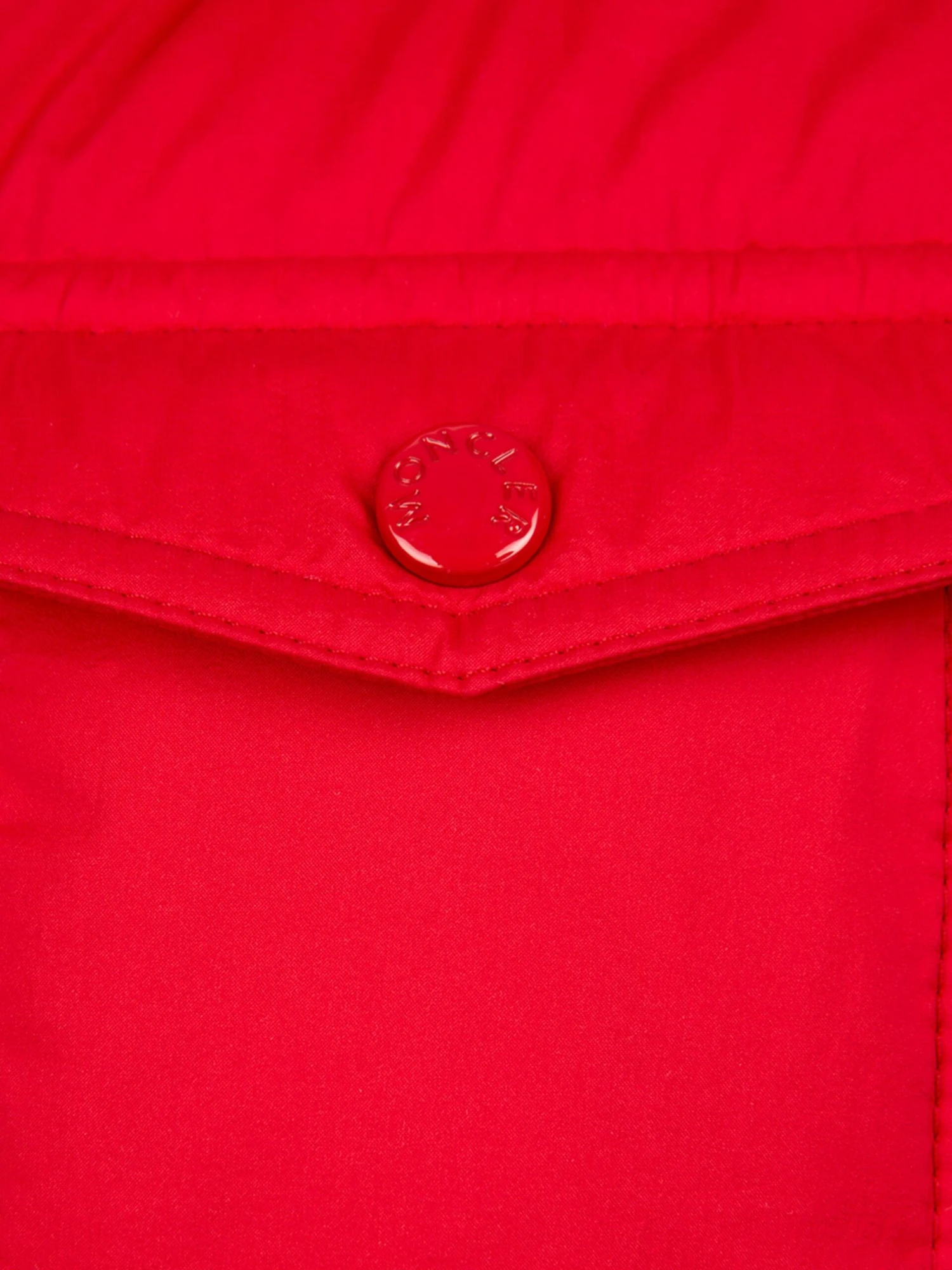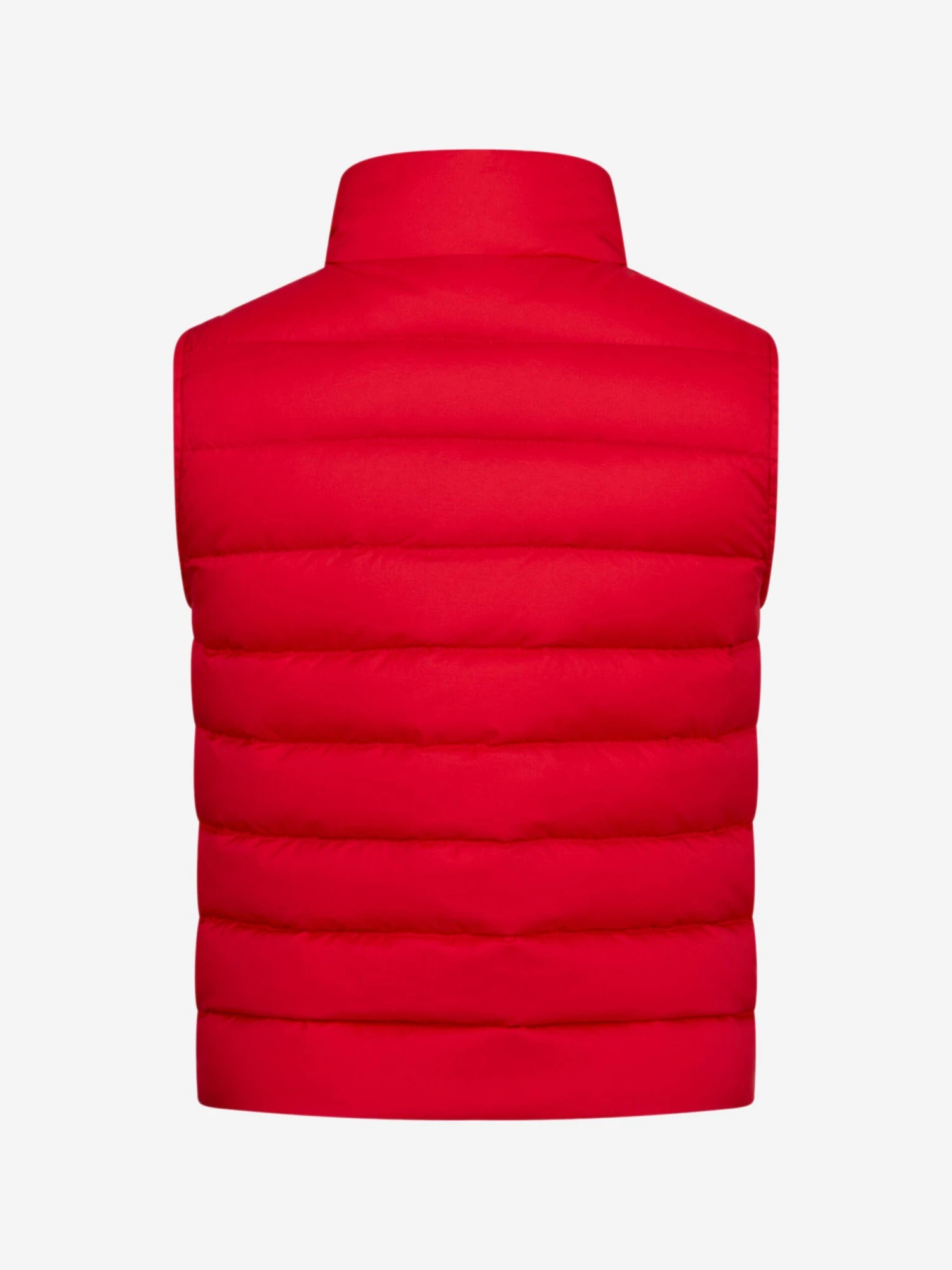 Get your little man winter-ready with this stylish boys’ gilet by Moncler Enfant. The bright red padded sleeveless jacket is made from soft nylon and filled with light down to add extra warmth. Front pockets, a zip fastening and the iconic Moncler tag complete this perfect layering piece.