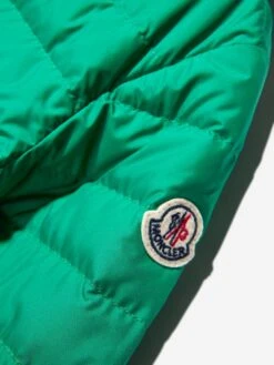This Moncler Enfant Alim padded jacket is perfect for all occasions. It features a green hue, is made of 100% polyester for durability and provides lightweight comfort and warmth. This versatile coat features a relaxed fit and is ideal for casual and snow wear. Perfect for boys, this piece is sure to keep him warm and stylish all season long.