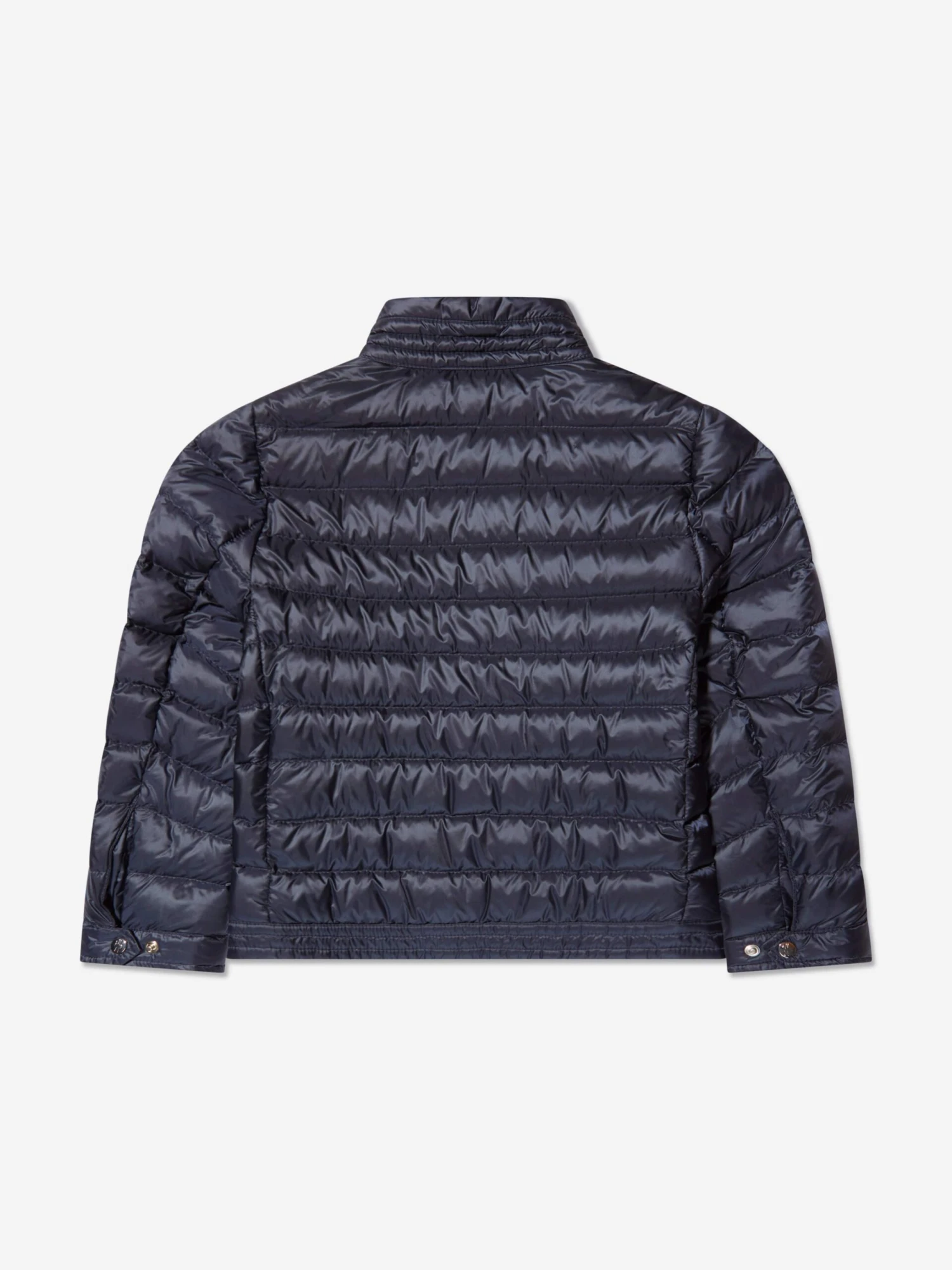 This Moncler Enfant Urzay Biker Jacket is perfect for any type of weather. It’s made of 100% Polyamide and comes in a stylish navy colour. It features a hood for extra coverage, a full down lining for a cosy feel, and snap button closures for a snug fit. This versatile jacket is ideal for both Casual and Snow wear. Boys from 4 to 16 y.o. will feel comfy wearing this stylish piece.
