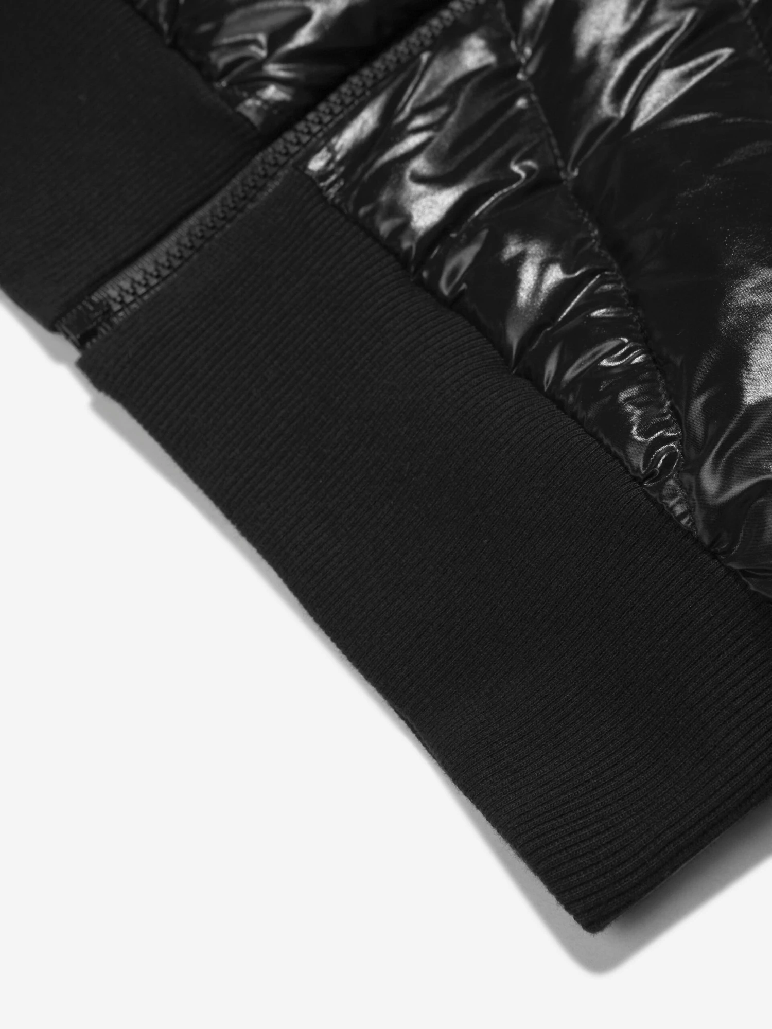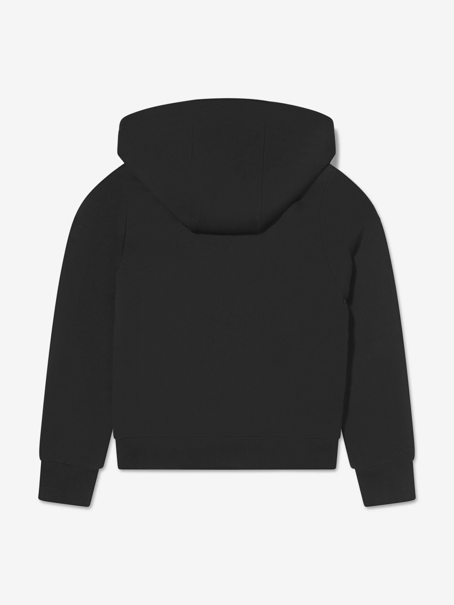 Layer up in apres-ski chic with this boys black zip-up hoodie from Moncler. Lauded for their weatherproof wear, this cosy cotton piece offers warmth, comfort and style. A down padded front provides protection from the elements in a lightweight shell, with a contrast texture chevron displaying a logo print and the iconic felt badge decorating the left sleeve.
