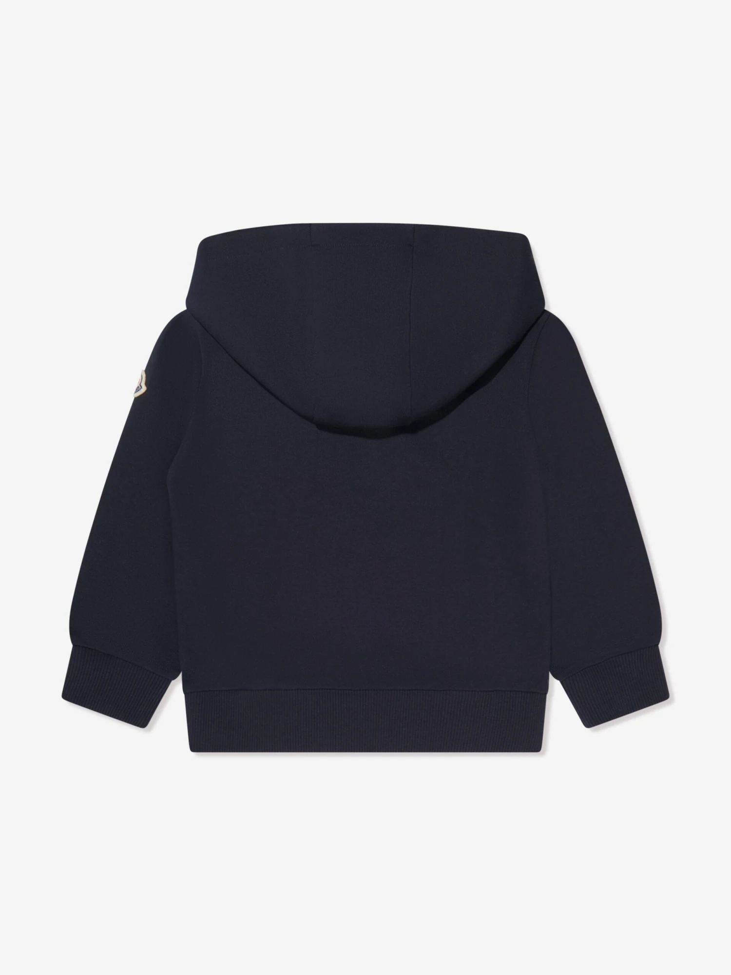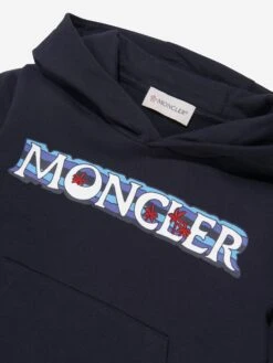 Keep your little one warm and stylish in this navy Moncler Enfant Boys Logo Hoodie. Featuring a classic pullover style, it has a unique logo graphic on the chest and ribbed cuffs and hem. Perfect for casual wear, it is crafted from 100% polyester and is sure to provide lasting comfort.