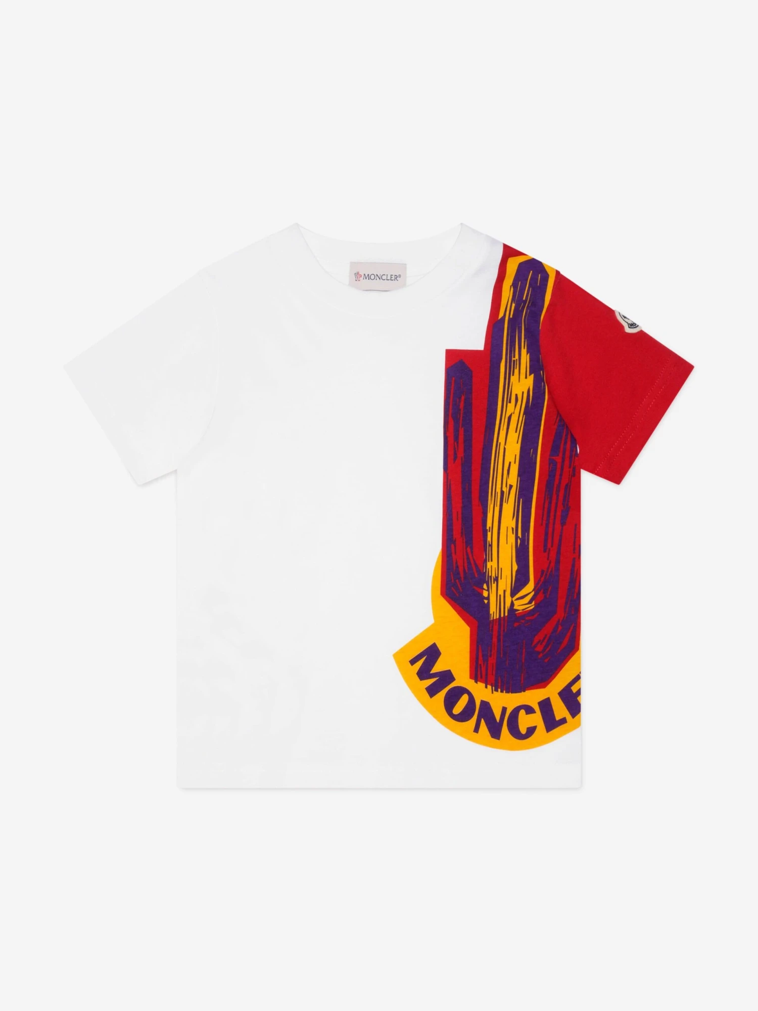 Moncler Enfant’s boys logo print t-shirt is made of 100% cotton, perfect for all-day comfort. Its bright white color and classic design make it ideal for casual wear. The cheerful logo printed on the front and back adds a playful touch. With its timeless style, this classic t-shirt makes a great addition to any boy’s wardrobe.
