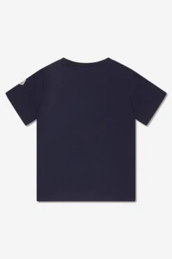 Mmmm… This boys navy t-shirt from Moncler is a tasty treat. Crafted from a soft, comfy cotton; the deliciously cosy tee features a large M and logo silhouette embroidery on the front, whilst the iconic badge appliqué adorns the left sleeve. We suggest going oversized for a cool, retro look.