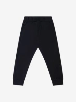 This cosy boys tracksuit from Moncler Enfant takes everything they know about high performing outerwear and pivots it into sporty everyday comfort. The zip through top has a soft cotton lining, pockets and stretchy rib cuffs. Matching drawcord joggers cut a sporty silhouette and feature the Moncler embroidered logo taping to the sleeves.