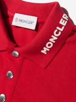 Everyday smarts done the Alpine way, this boys red long sleeve polo shirt from Moncler is a chic and versatile piece. Crafted from a soft, cool cotton piqué, an elegant logo print appears on the collar, joining branded silver snap-press buttons. The cuffs feature a striped trim and the label’s iconic badge emblem sits on the left sleeve to finish.