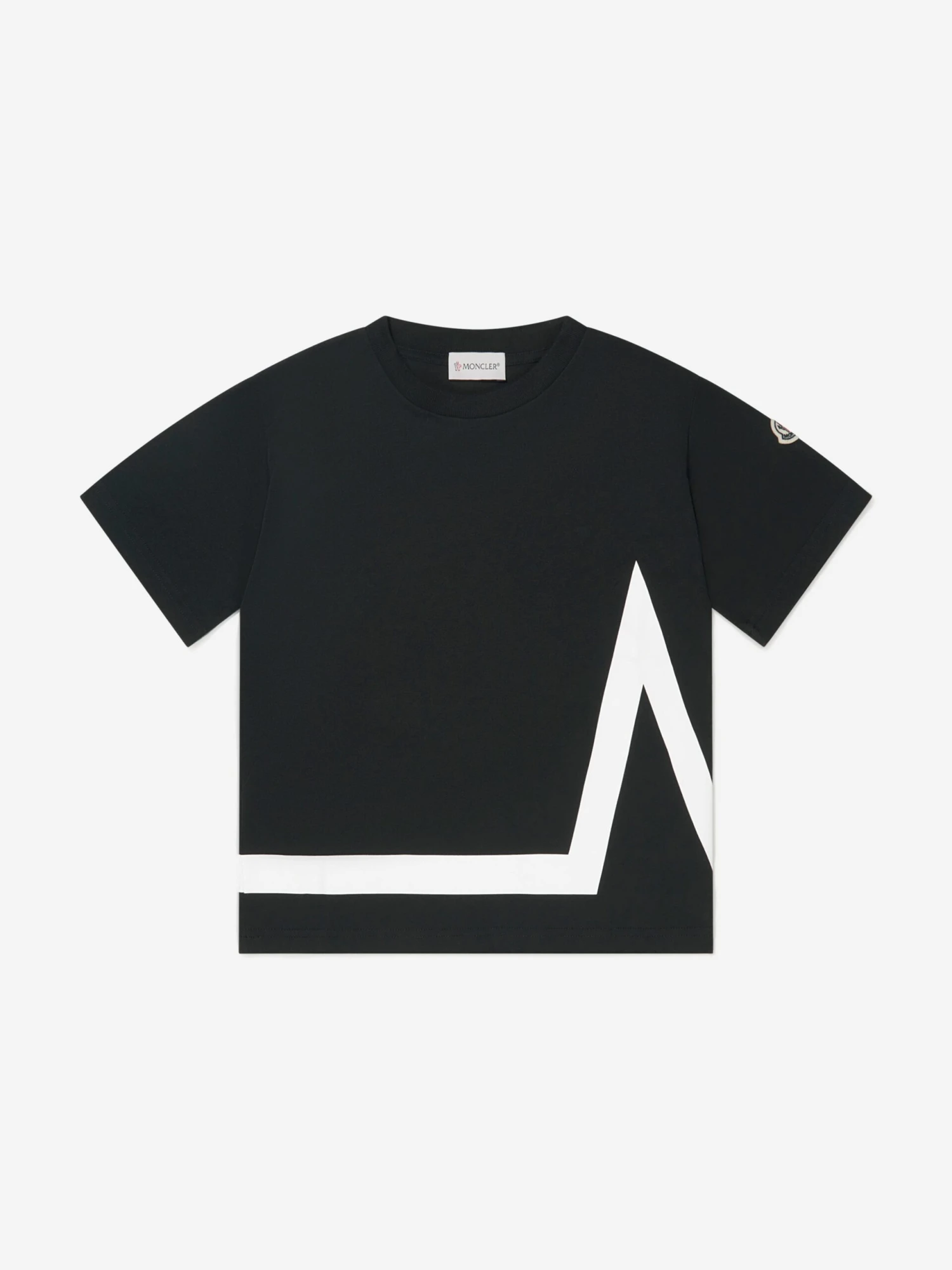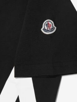 Elevate everyday casuals with this boys black t-shirt from Moncler. Crafted from a soft, cool cotton, the piece features a striking M motif wrapped around the left side, joining the iconic badge emblem sitting on the left sleeve.