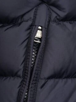 Add some high performing outerwear to your little man s winter wardrobe with this navy padded jacket from Moncler Enfant. With luxurious silky water and wind repellent quilted panels, this down filled jacket provides maximum comfort and warmth, whatever the weather. With a stand-up collar to shield from the chill, and stretch knit cuffs to keep the cold from creeping in. There’s side zip pockets to warm hands and keep essentials safe. With a silicone Moncler logo on the sleeve.