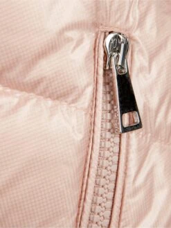 Pretty and practical, this girls’ jacket by Moncler Enfant will be a must-have winter piece. The light pink padded jacket is made from lightweight nylon and filled with a warm down to keep out the chill on wintry days. A useful hood, zip fastening and front pockets also adorn this luxury jacket that is finely finished with the brand’s logo patch sewn onto the arm.