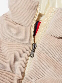 More than just a top layer, this girls pink Anterne jacket from Moncler is a style statement in itself. Built to withstand extreme demands, cosy down and feather padding provides elevated insulation in an attractive corduroy shell. The soft pink hue lends itself to multiple looks and is finished with the iconic felt badge adorning the left sleeve.