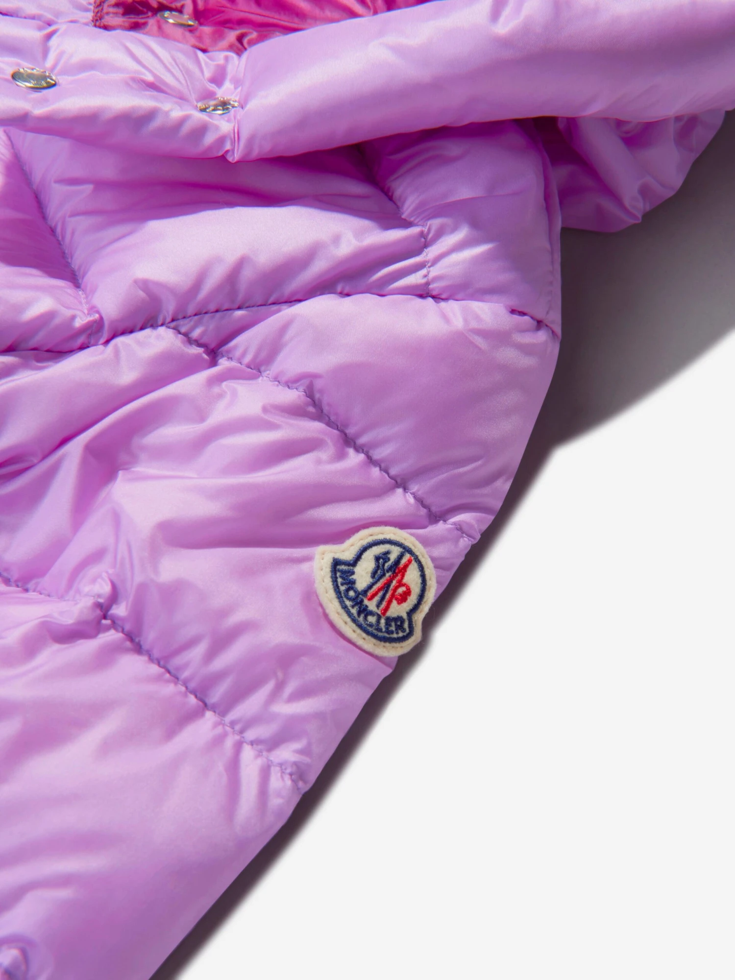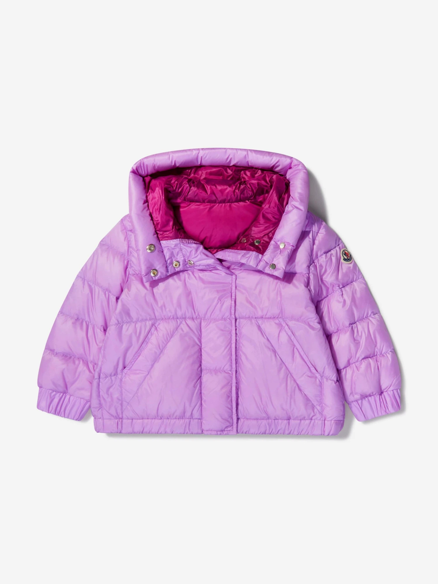 Moncler Enfant’s Axelia jacket is filled with insulating down to keep your little one snug. This vibrant lilac design is covered in glossy quilted shell, and has elasticated cuffs to trap the heat.