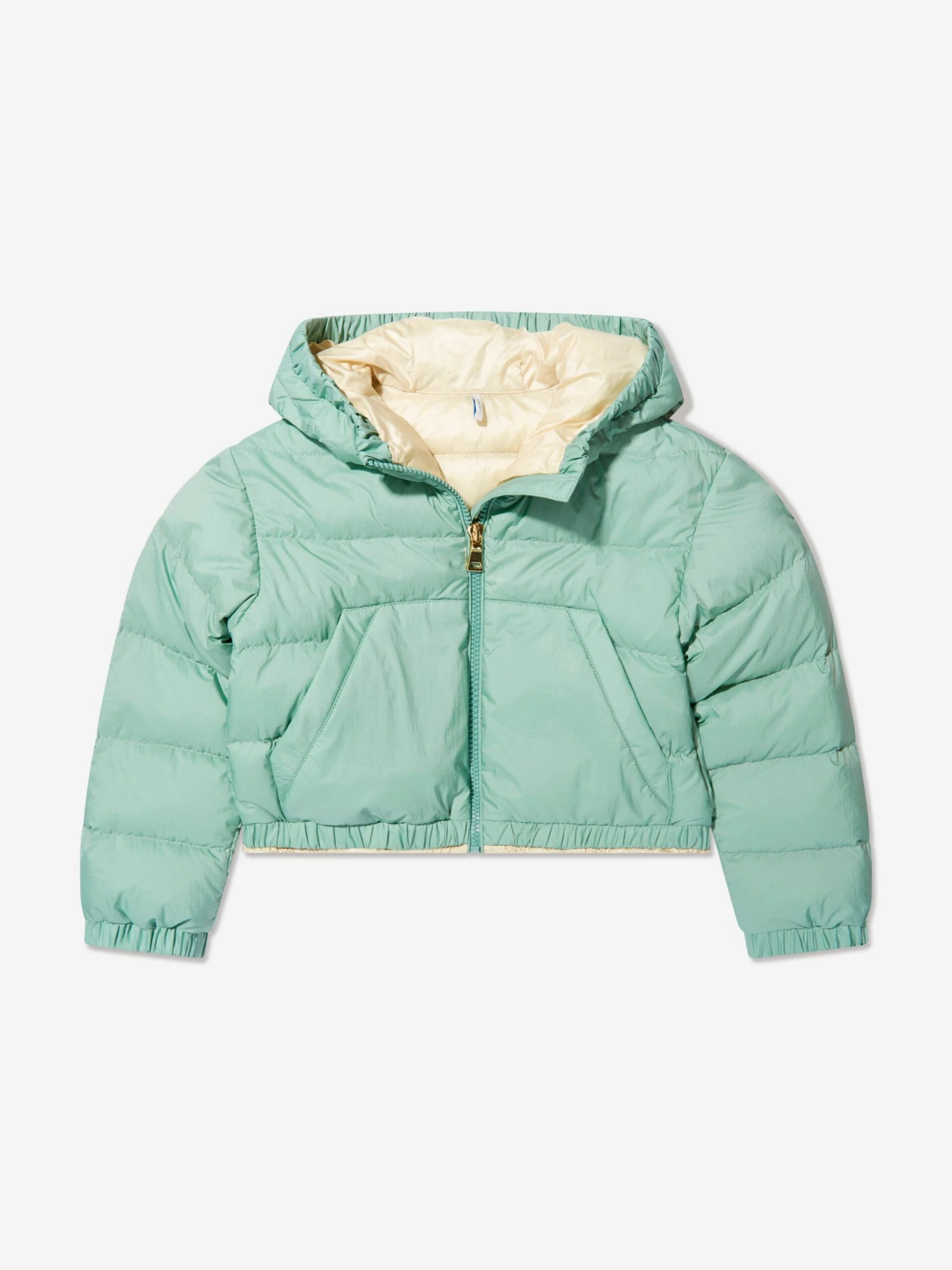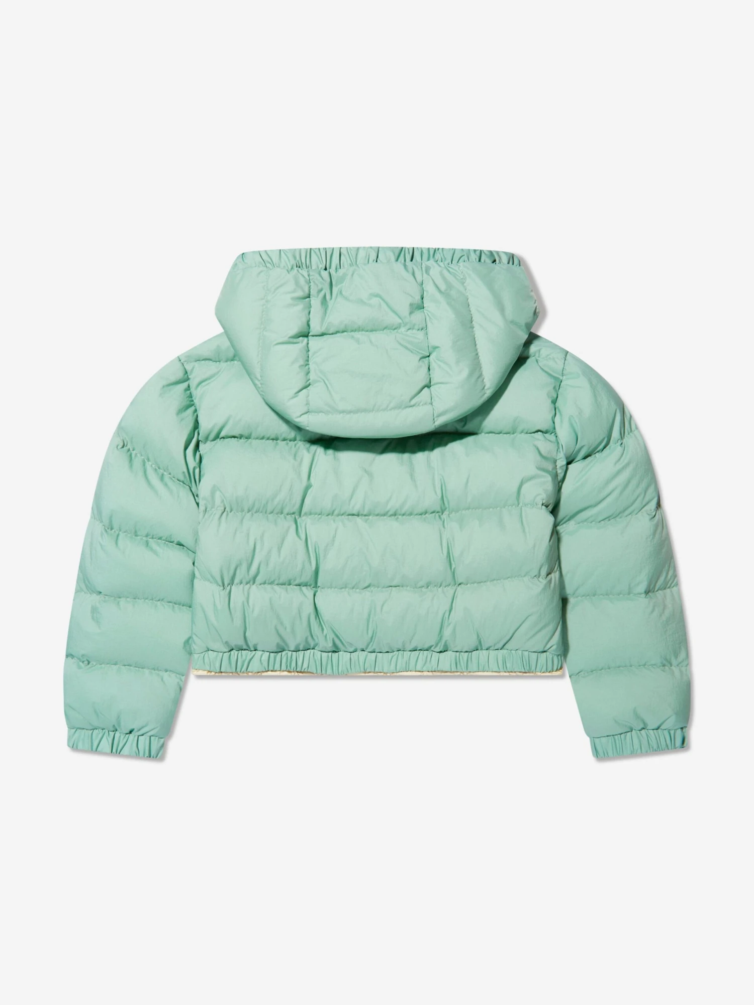 Moncler Enfant presents a Girls Down Padded Mantas Jacket, designed for casual and winter wear. This beautiful green jacket is made of 100% polyamide for comfort and warmth. It provides a stylish look for girls, suitable for all occasions. This is a great addition to any wardrobe. Make sure your girl looks trendy in this down padded Manta jacket.