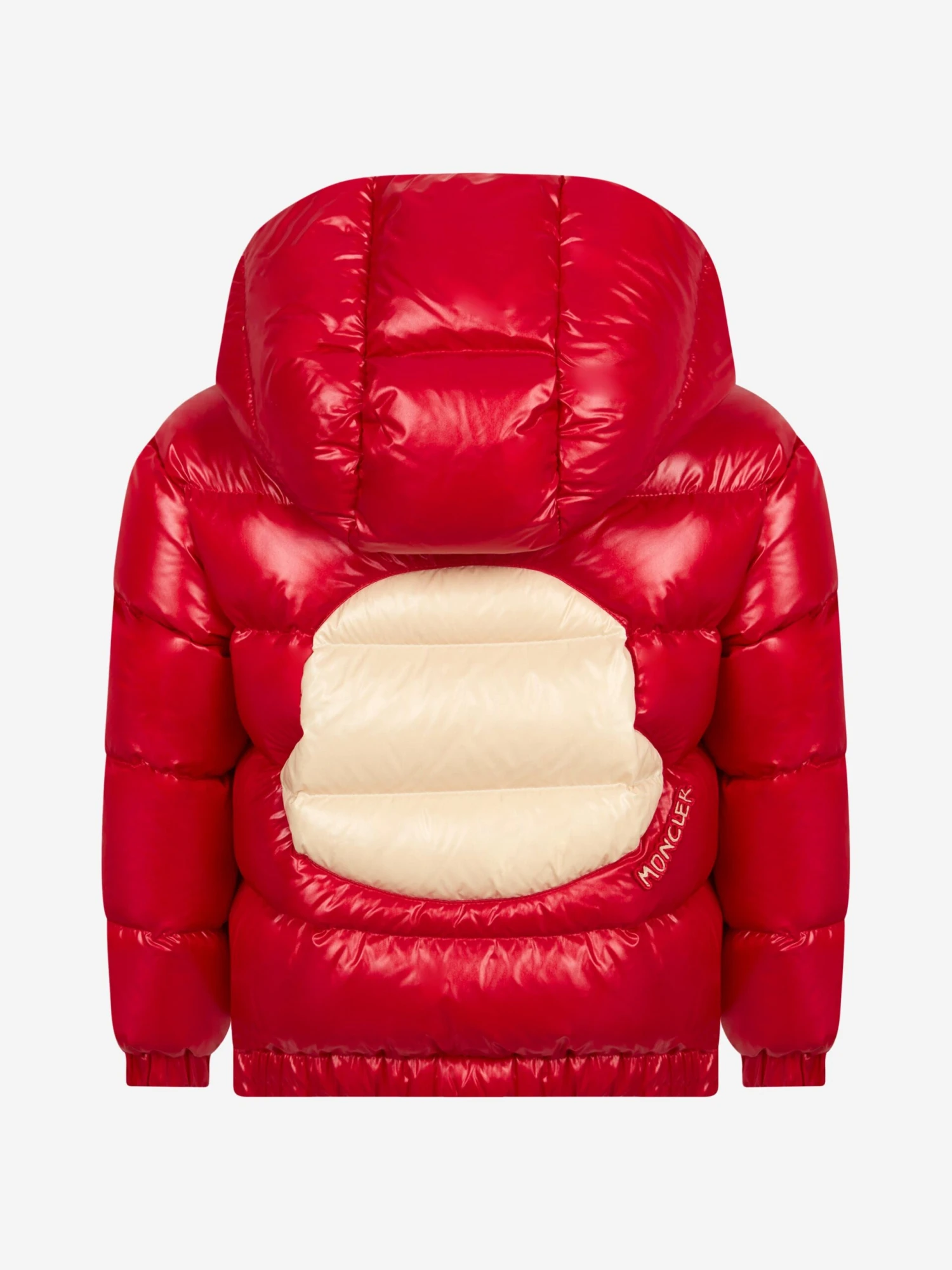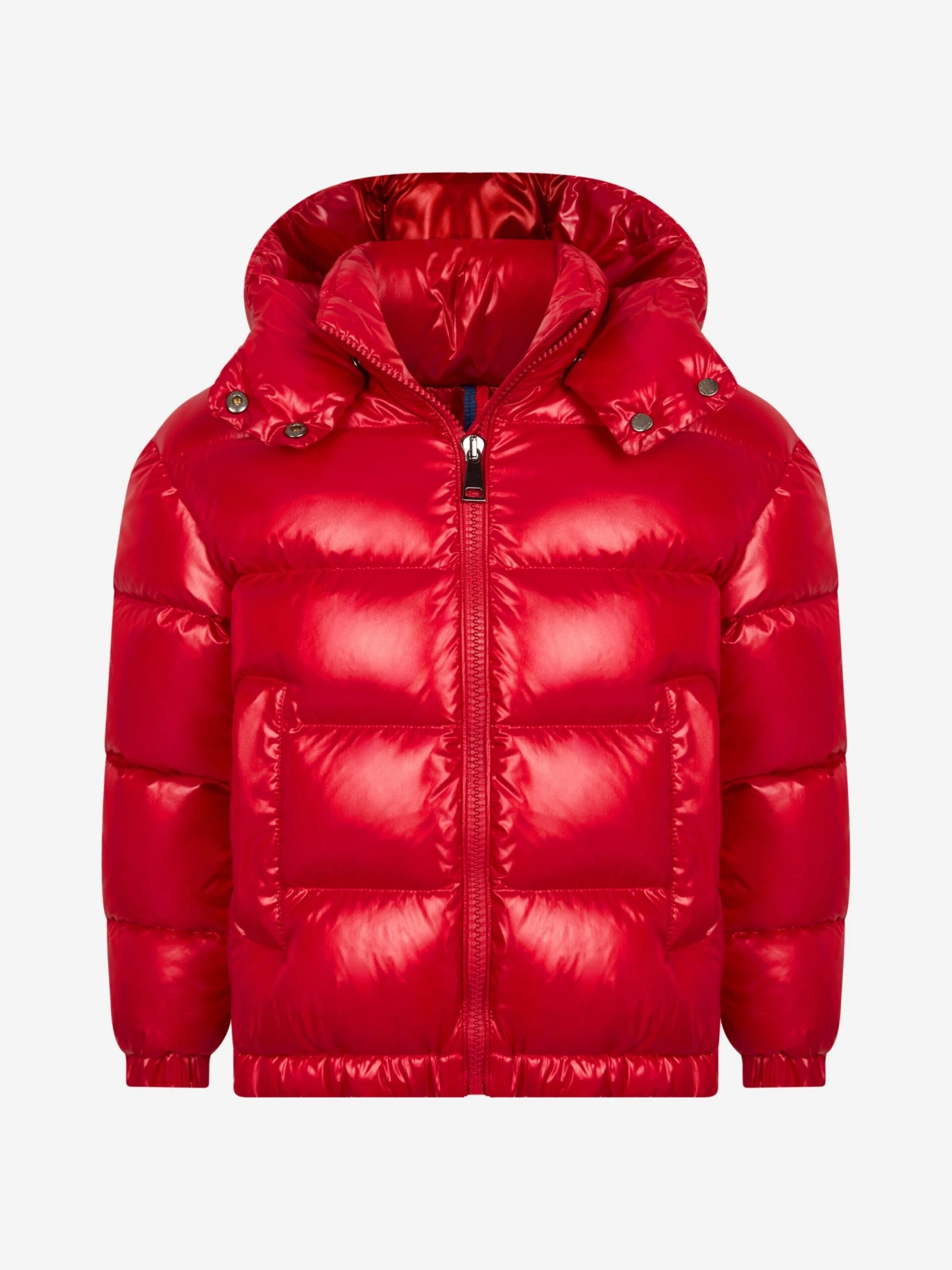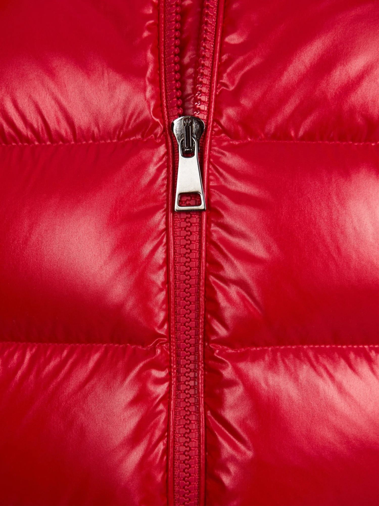 Inject some serious colour into her winter wardrobe with this statement girls’ coat by luxury label Moncler Enfant. The smooth shiny vivd red coat is padded with down for extra warmth and has a cosy hood, elasticated openings on the sleeves and waist for a comfortable fit and a secure zp fastening down the front. The designer piece also has an oversized Moncler logo in cream on the back with the branding embroidered next to it.