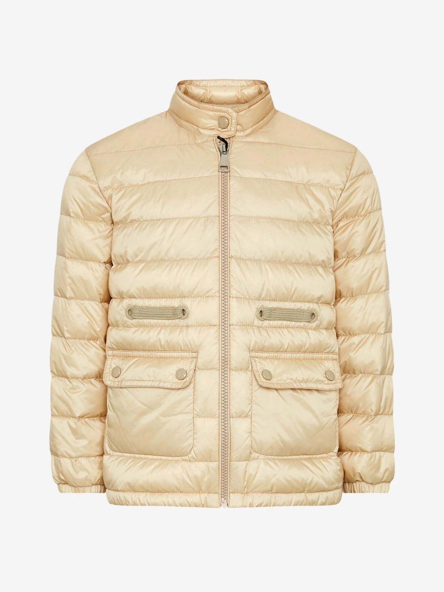 This Gouria girls’ jacket from Moncler is the perfect addition to their outerwear collection. In a natural colourway with cosy padding throughout. The high neckline and long sleeves will keep them extra warm, while a full-front zip fastens at the front. Two front patch pockets and an adjustable waist string sit at the front for a customised fit.