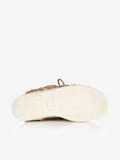 She can style out snow days with ease in these stunning boots by Moncler Enfant. The luxurious beige boots have a soft upper with a sheepskin trimmed detailing down the front, around the heel and lining the inside for a supremely comfortable wear. These slip-on boots also have a lace detailng on the front with the iconic Moncler logo on the side and are completed with a chunky gripped rubber sole.