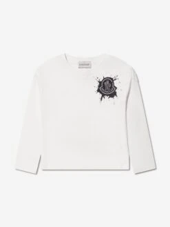This white long-sleeve t-shirt from Moncler Enfant is perfect for casual days for girls. Crafted from 100% cotton, it features a minimalist logo print across the chest with a timeless appeal. Soft and comfortable, this piece is sure to become a favorite.