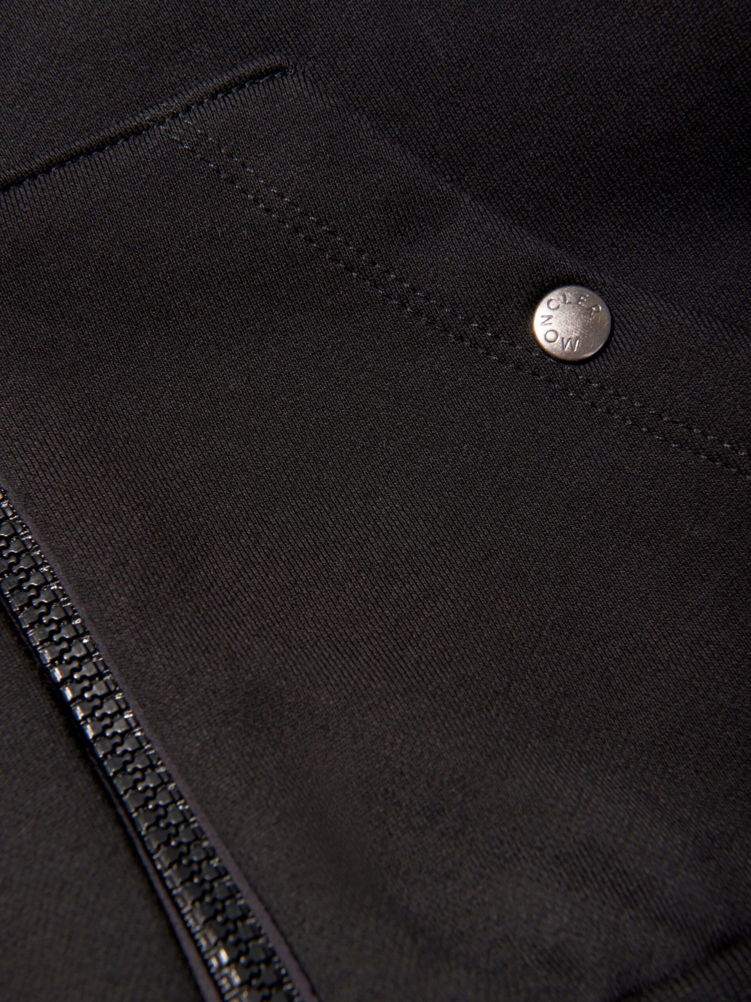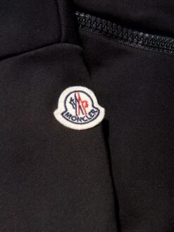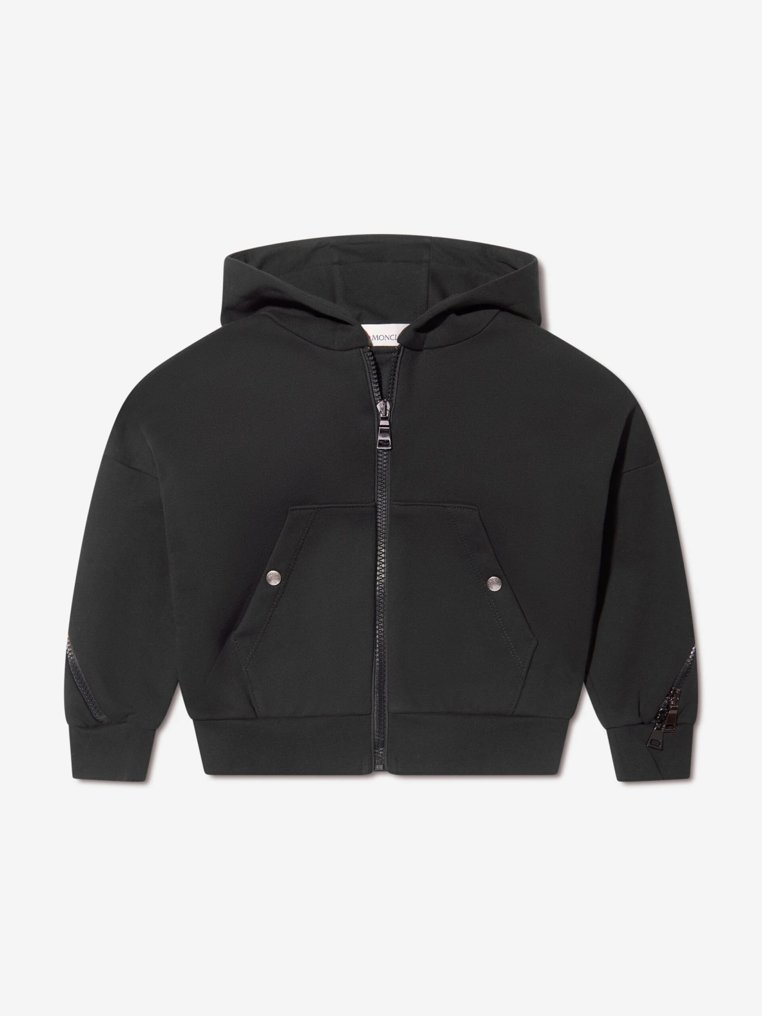 Warmer weather means lighter layers and this girls black hoodie from Moncler is the perfect covering for cross-seasonal dressing. Crafted from a soft, comfy cotton, an interesting double zip works itself around the sleeves to reveal a grosgrain logo motif on the reverse, and the iconic badge appliqué adorns the left sleeve.