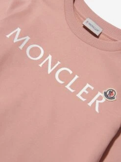 Elevate everyday casuals with this kids’ pink sweatshirt from Moncler. Crafted from a soft, comfy cotton, the piece features a classic logo print on the chest, joined by the iconic felt badge overlapping on top for a cool, clean look.