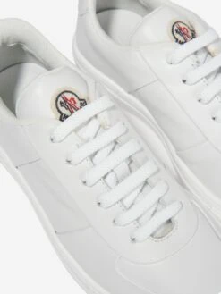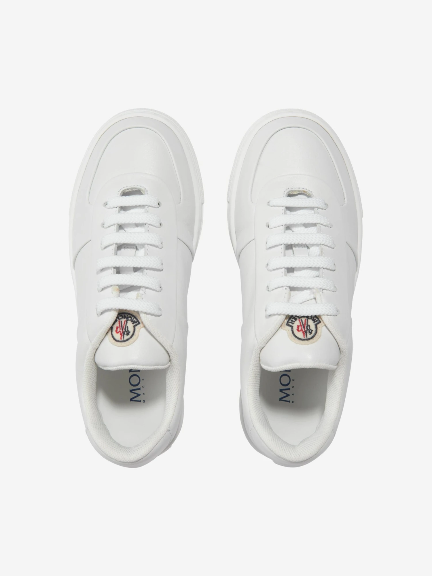 Cool, clean and as fresh as newly fallen snow, these kids white Petit Neue York low top trainers from Moncler are a must have style staple. Crafted from a soft, supple leather, these lace up sneakers feature a minimal panelled design, decorated by a tricolour flag on the heel and the iconic felt badge on the tongue.