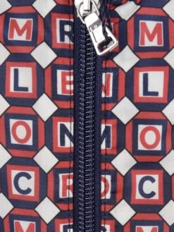 Update their layers with this baby boys’ jacket from Moncler. With a lightweight shower-resistant outer and comfortable lining, it has a fixed hood and full-front zip fastening. Ribbed cuffs keep chills at bay and the sleeves are decorated with Moncler branded tape detail. Finished with a colourful navy and red print.