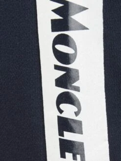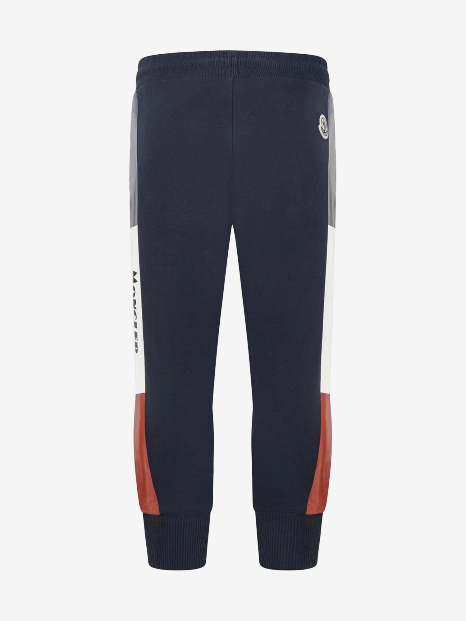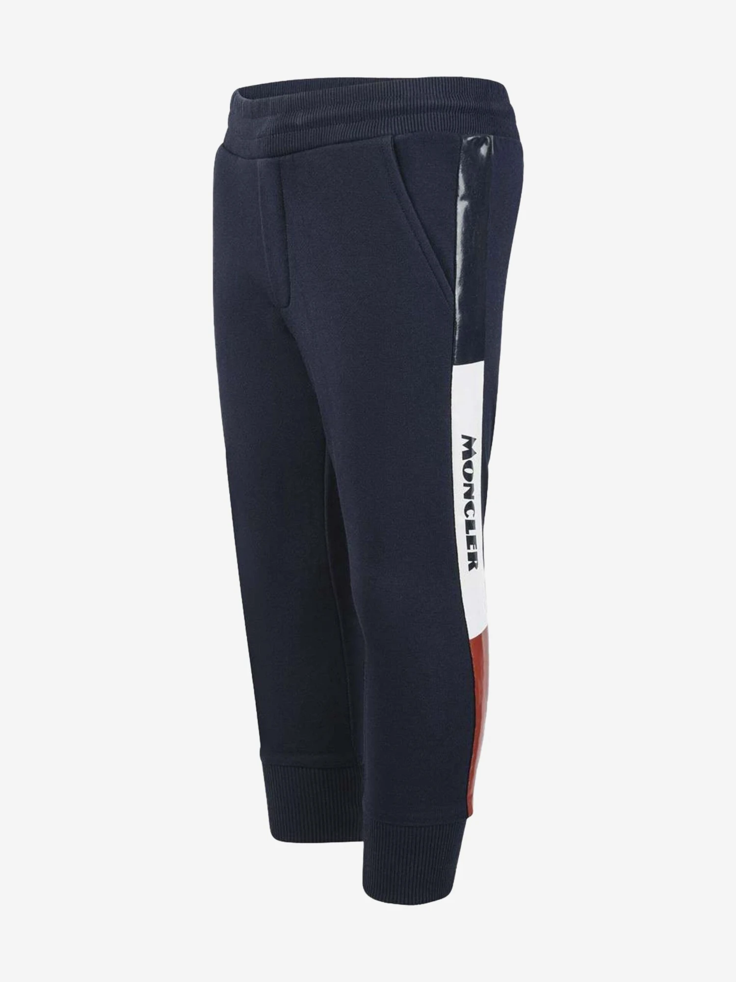 Moncler boys joggers with a drawstring waistband, side seam pockets, logo panel on the seams and a branded tab on the reverse.
