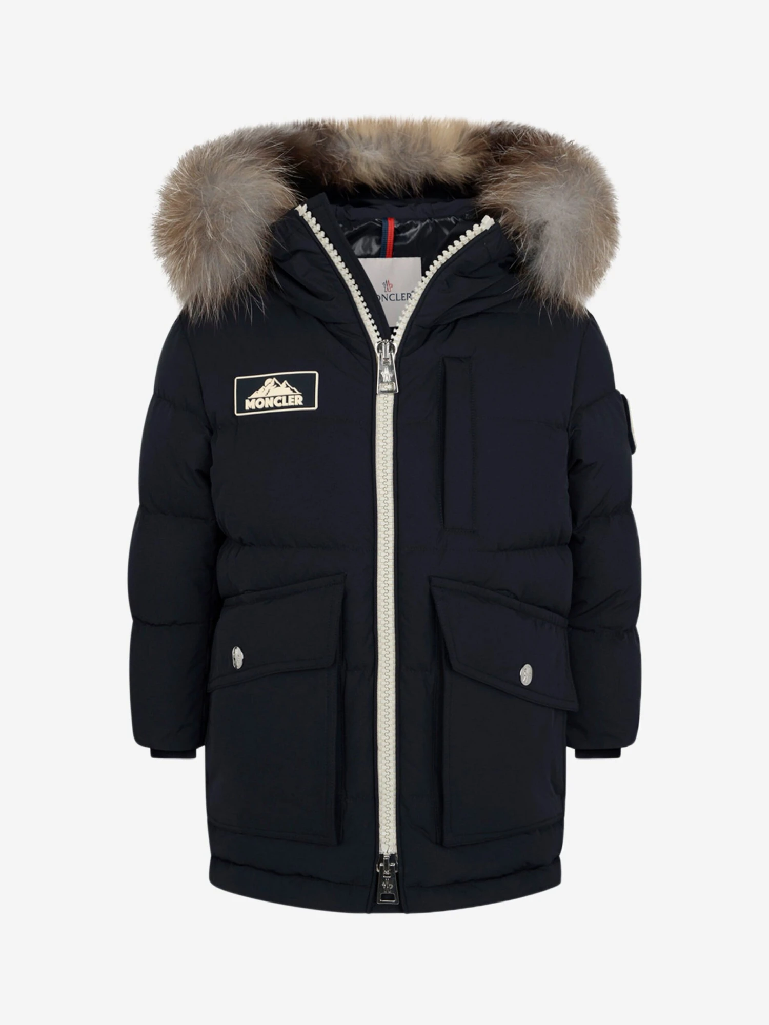 Layers of luxurious protection from the elements, this boys warm down padded jacket from Moncler Enfant features a detachable hood with optional fur trim. With fleece lined collar, ribbed cuffs, practical pockets and a full length zip fastening. With rubberised alpine logo on the chest and tonal badge applique on the sleeve.**This item contains real fur**
