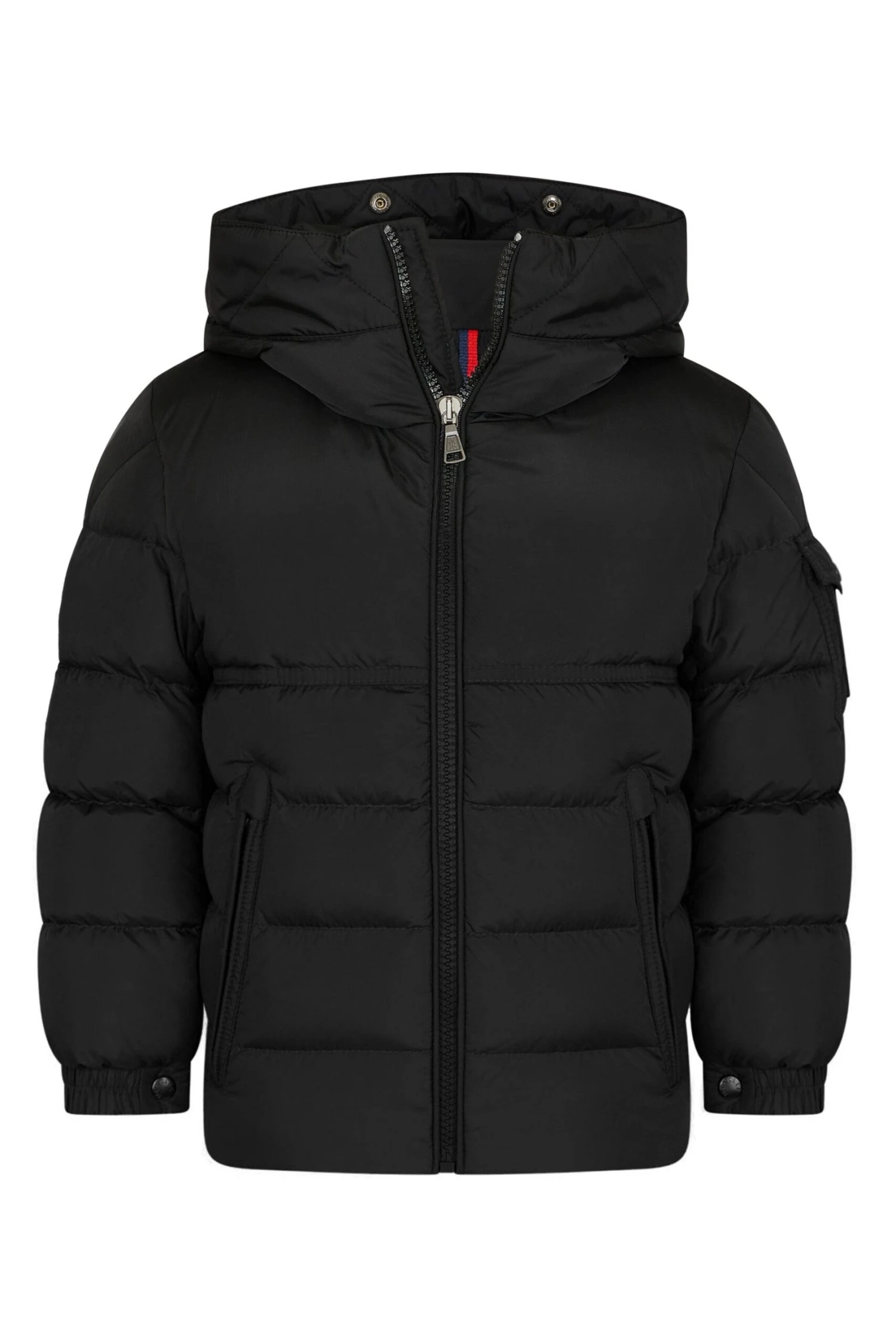 Exhibiting cool alpine style, this boys warm down padded jacket from Moncler Enfant features a detachable fur trim on the hood, elasticated snap press cuffs, practical pockets and the iconic badge applique on the sleeve pocket. **This item contains real fur**