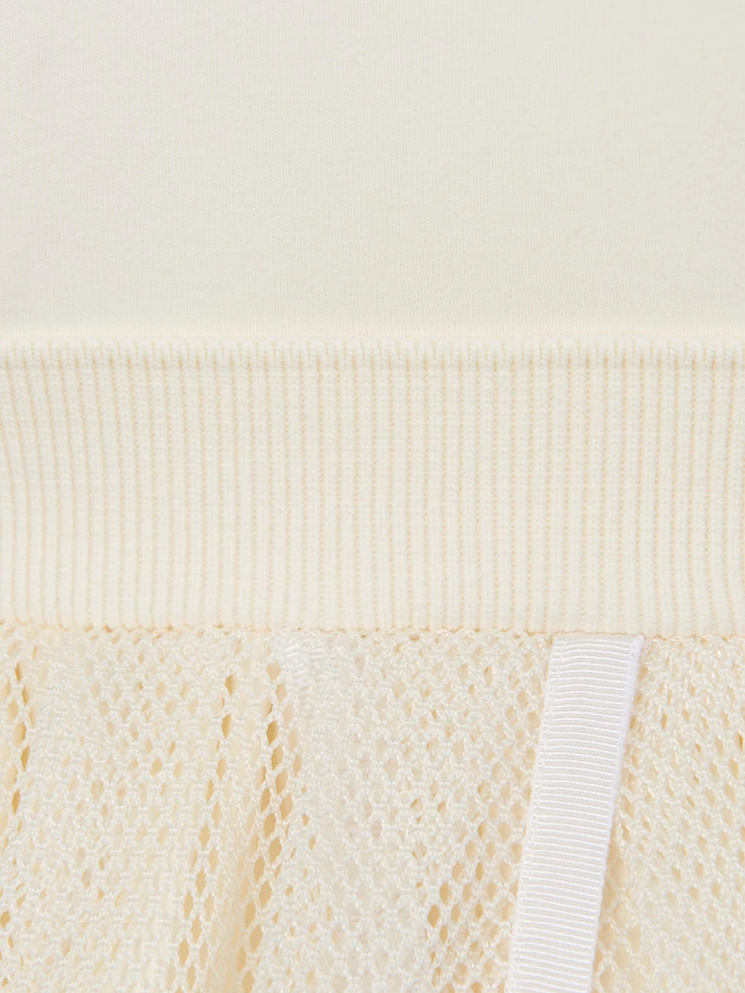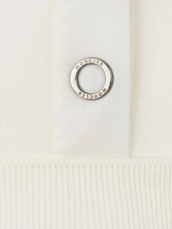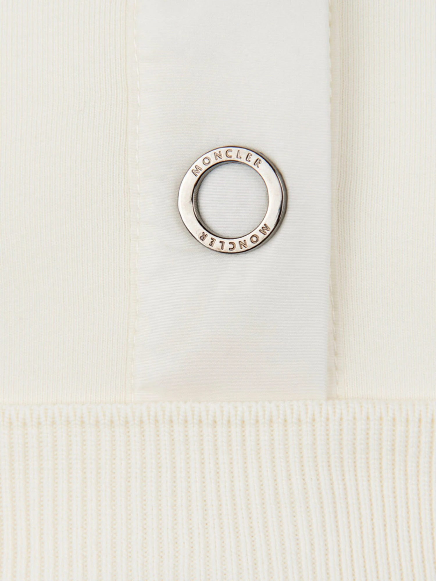 Sporty and stylish, this girls ivory polo shirt dress from Moncler features ribbed trims, an elasticated waistband, branded silver halo buttons, a badge applique on the sleeve and a gathered long skirt with a mesh layer on top.