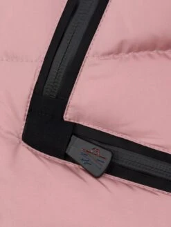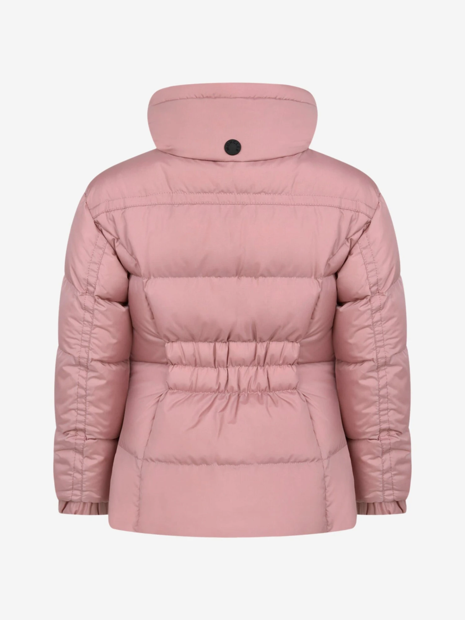 A stylish solution for keeping out the elements, this girls warm down padded jacket from Moncler features a high collar, concealed hood, full length zip closure, zig zag pattern zip pockets on the front, elasticated waist, interior elasticated hem and cuffs and finished with an M badge applique on the sleeve.